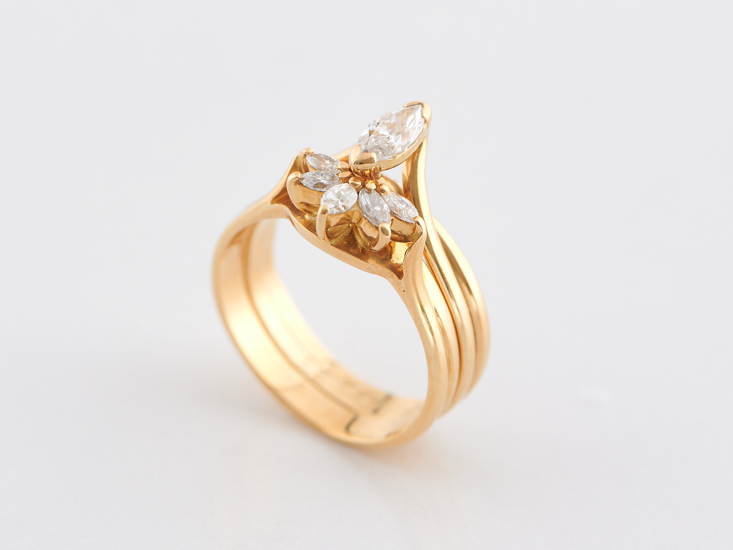 A DIAMOND RING SUITE IN 18CT GOLD, RING SIZE P, 7.3GMS