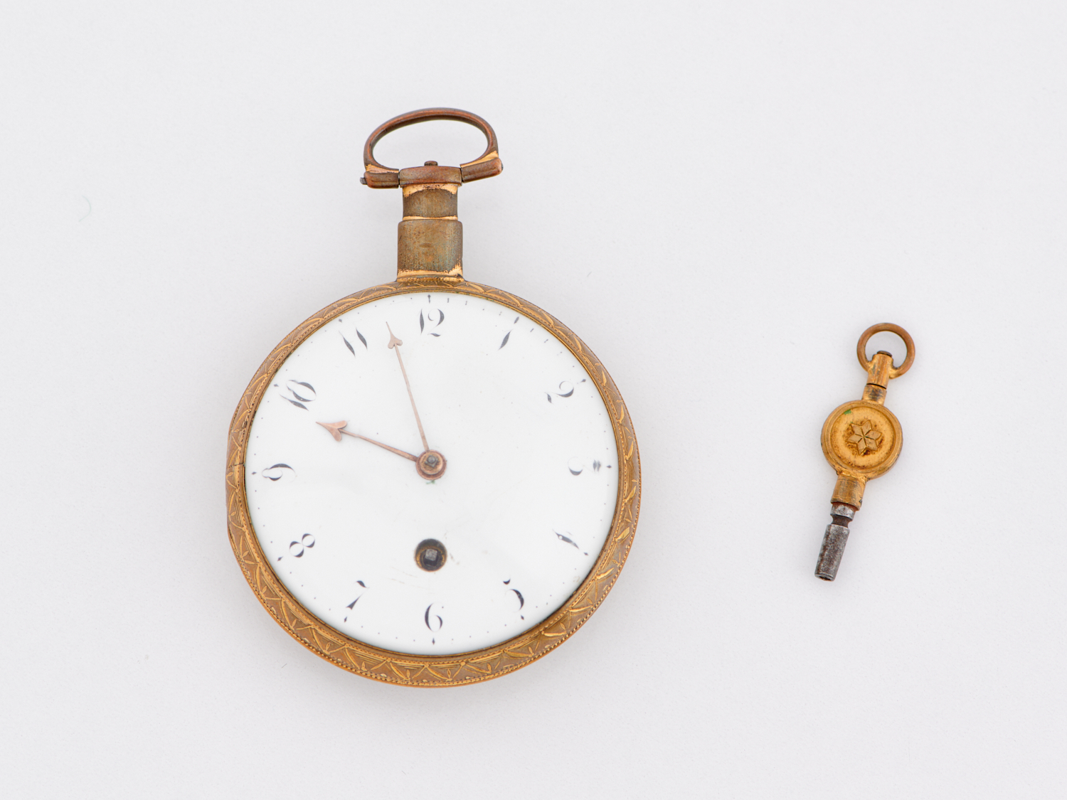 AN ENGLISH SINGLE-CASED VERGE FUSEE POCKETWATCH, CIRCA 1810, KEY WIND, KEY SET, MOVEMENT SIGNED WILLIAM BOYLE, LONDON, ACCOMPANIED BY A WATCH KEY, 52MM DIAMETER