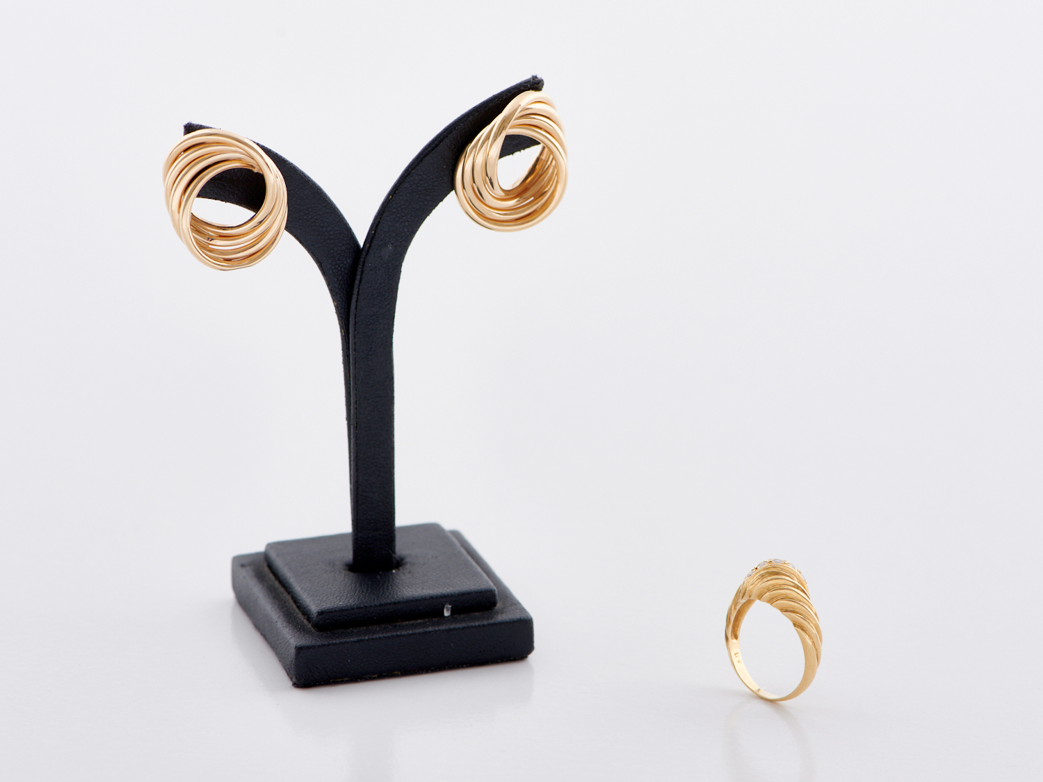 A PAIR OF EARRINGS IN 14CT GOLD TO POST AND BUTTERFLY FITTINGS, DIAMETER 20MM, 5.1GMS AND A DIAMOND SET RING IN 18CT GOLD, SIZE J, 4.1GMS