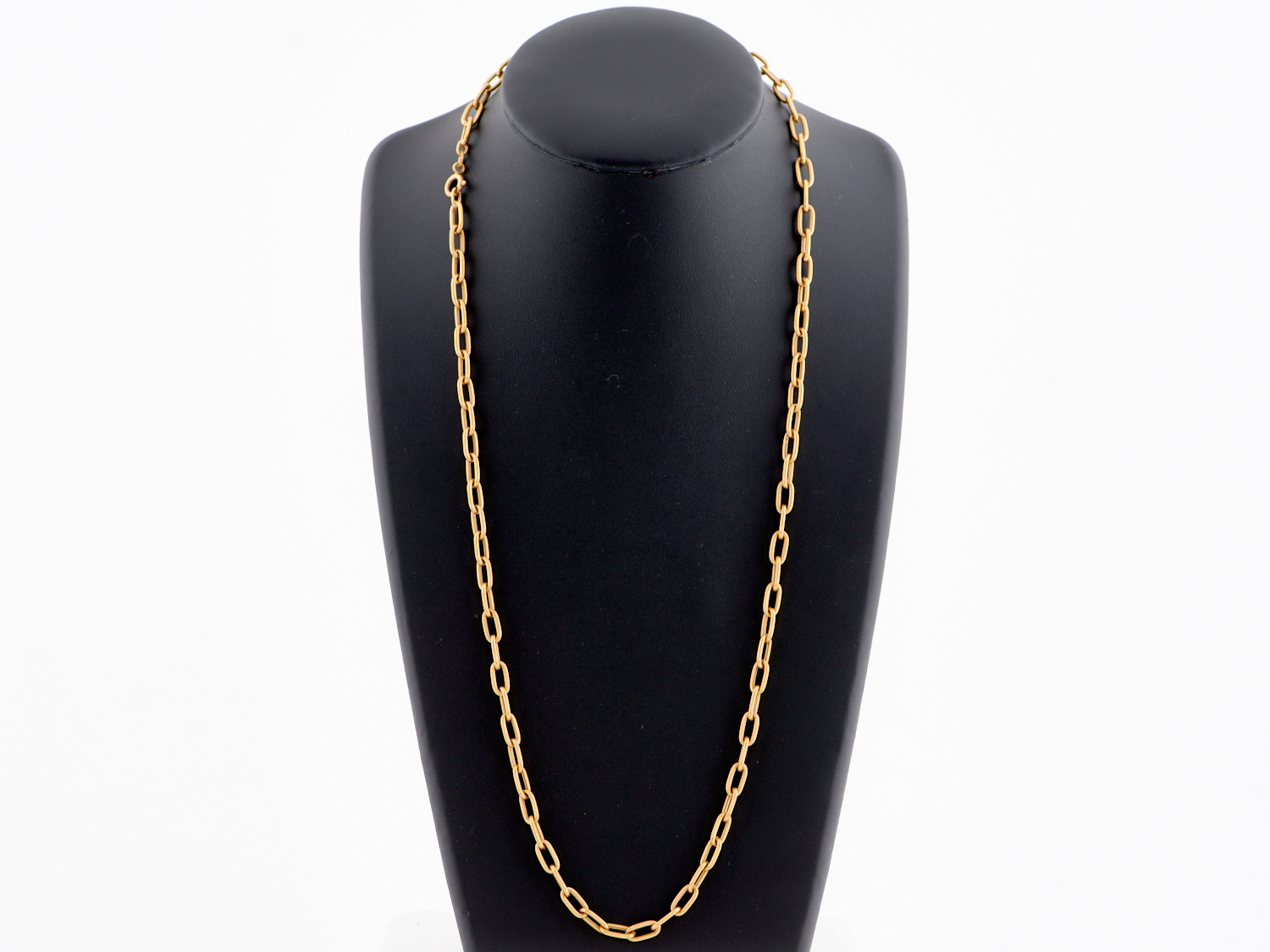 A LONG CHAIN NECKLACE IN 18CT GOLD, LENGTH 720MM, 19GMS