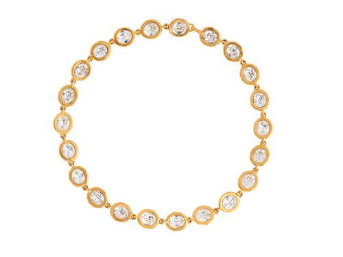 Designed by Victoire de Castellane, comprising a cut crystal necklace in gold tone metal, total length 500mm, with a conforming bracelet, total length 200mm.