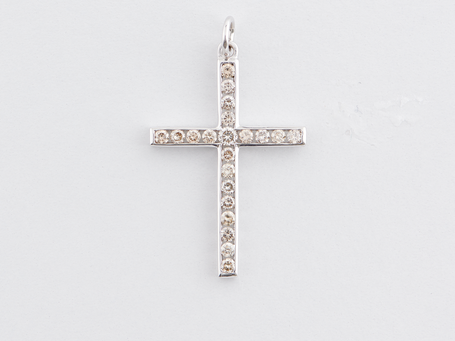 A DIAMOND SET CROSS PENDANT IN 9CT WHITE GOLD, 36 X 24MM, 2.8GMS, WITH VALUATION
