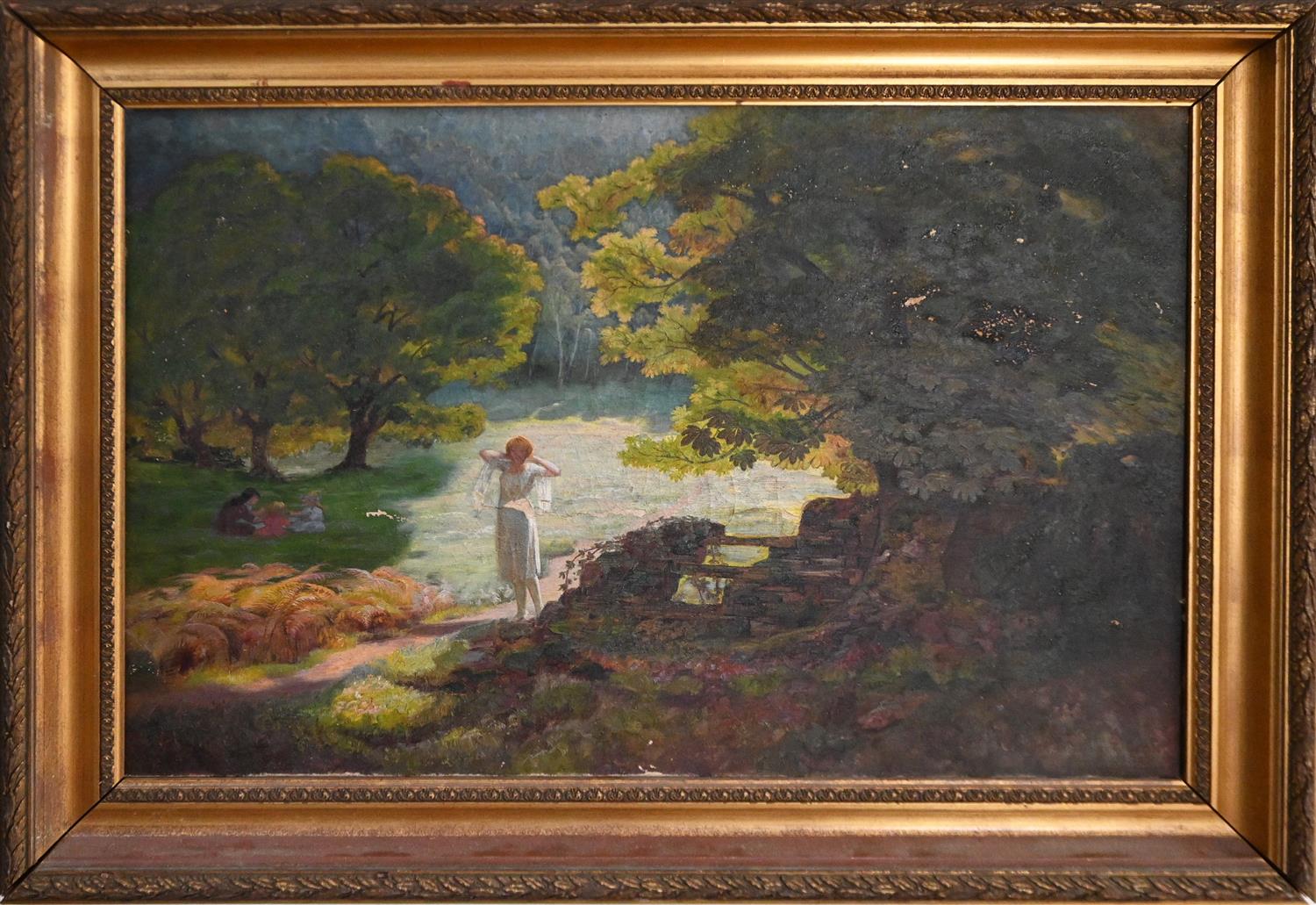 Significant paint loss through the centre and upper right, risk of further paint loss and cracking throughout, splits to the corners of the frame.