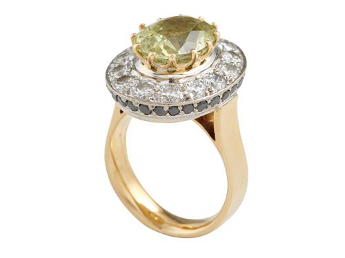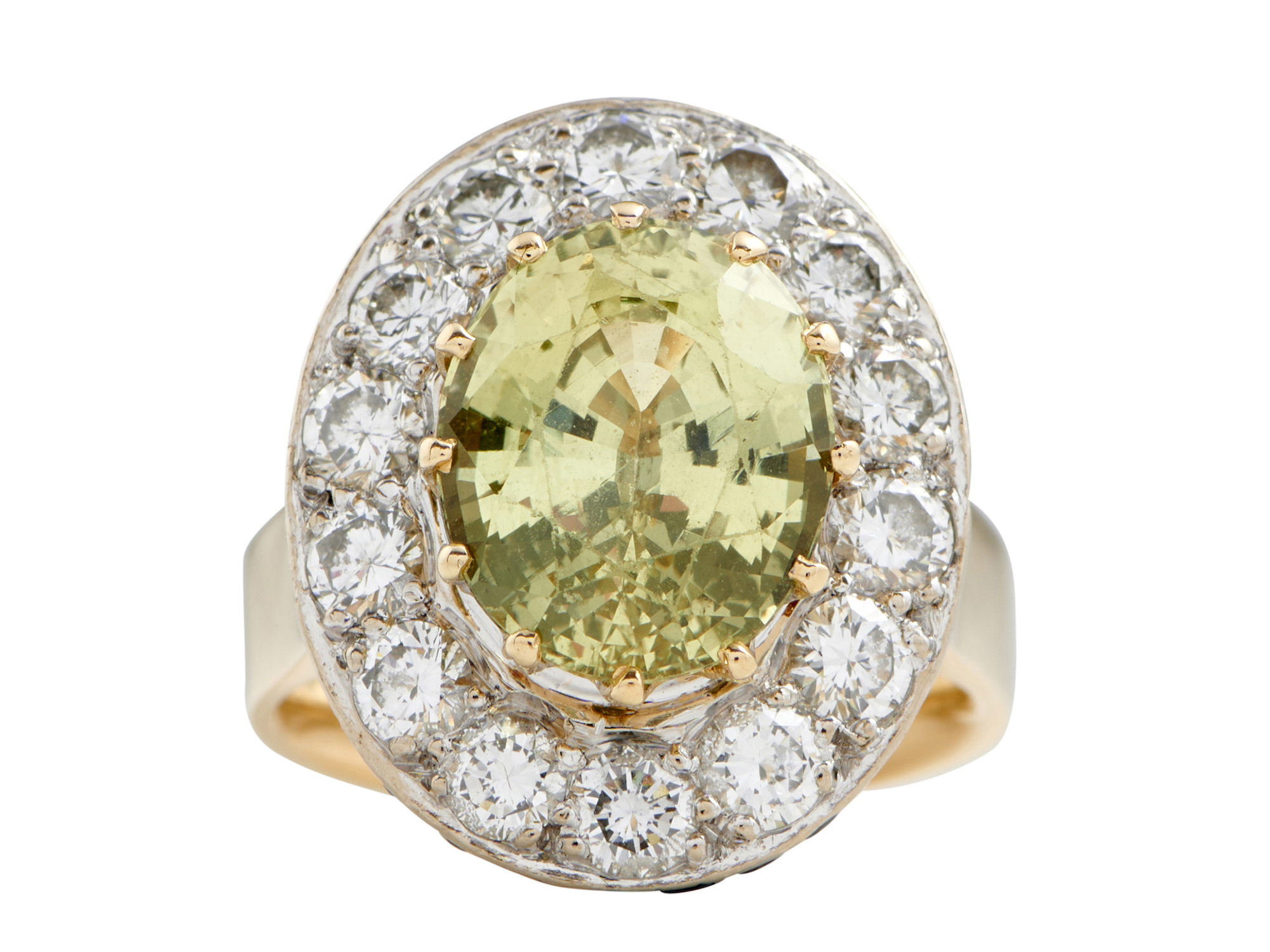 18CT TWO-TONE GOLD, CHRYSOBERYL AND DIAMOND RING