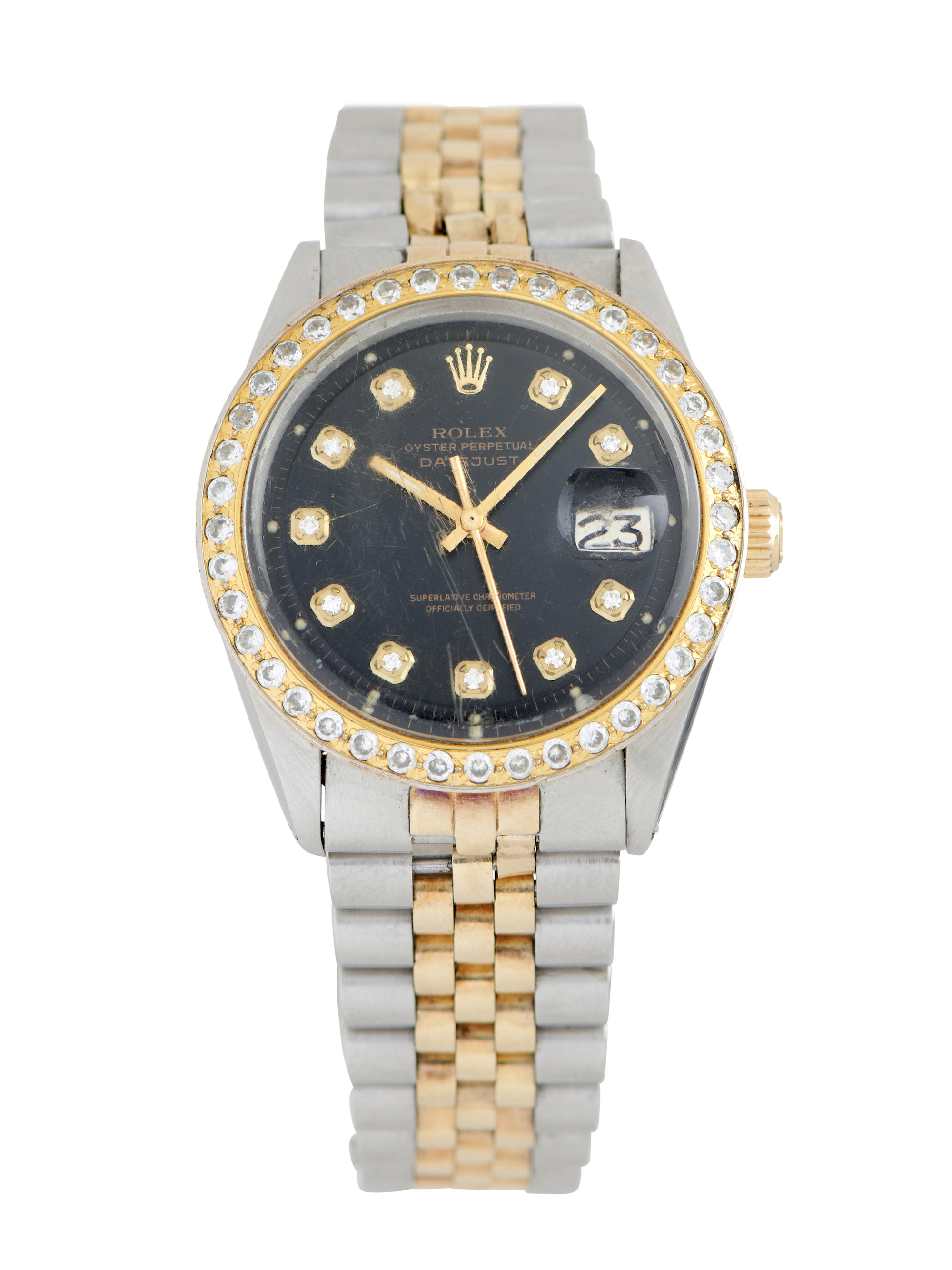Dial: black, diamond-set hour markers, magnified date aperture at 3
