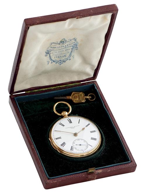 Accessories: Parkinson & Bouts Chronometer Makers to the Royal Navy, 59 Gracechurch St., London fitted box and watch key