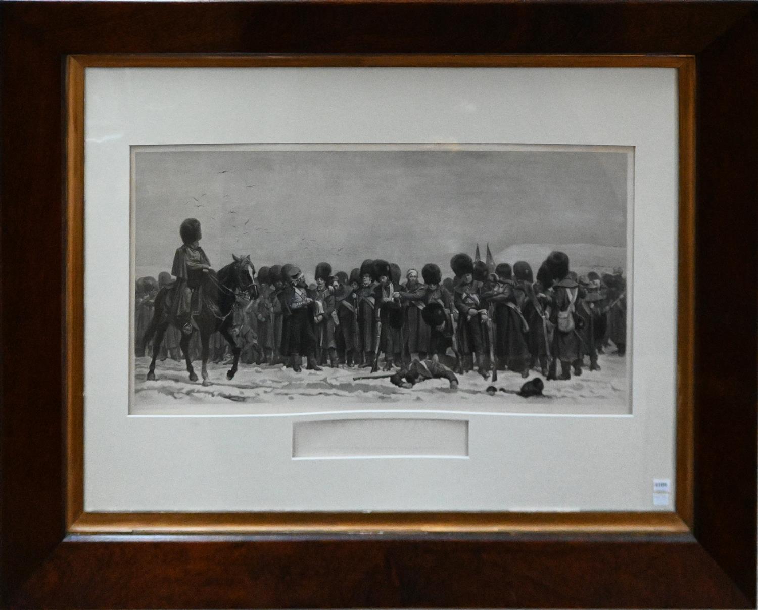 AFTER ELIZABETH THOMPSON, THE ROLL CALL, ENGRAVING, 38.5 X 76CM, FRAME SIZE: 89 X 114CM