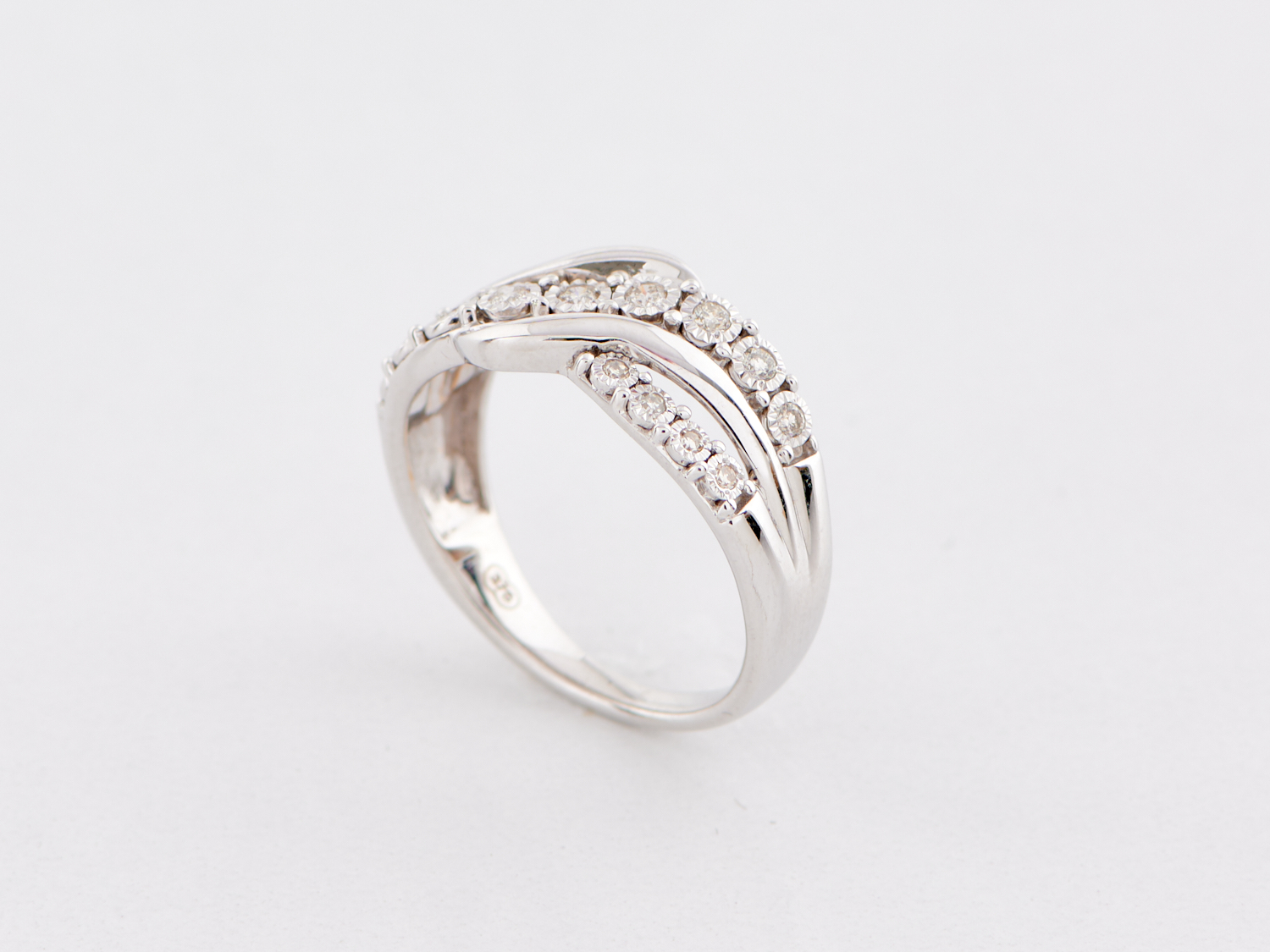 A DIAMOND RING IN 9CT WHITE GOLD, THE DIAMONDS TOTALLING 0.20CTS, SI/PI - HI, 3.37GMS, WITH VALUATION