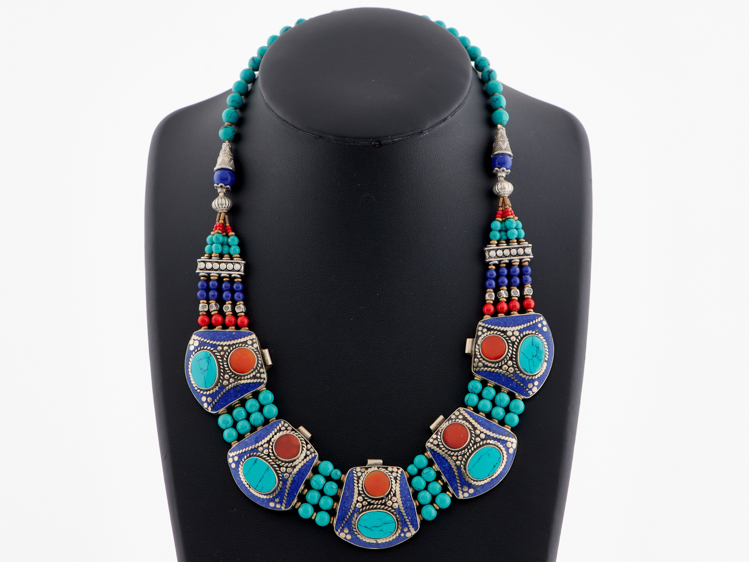 A STONE SET COLLAR WITH FITTINGS IN STERLING SILVER, TOTAL LENGTH APPROXIMATELY 485MM
