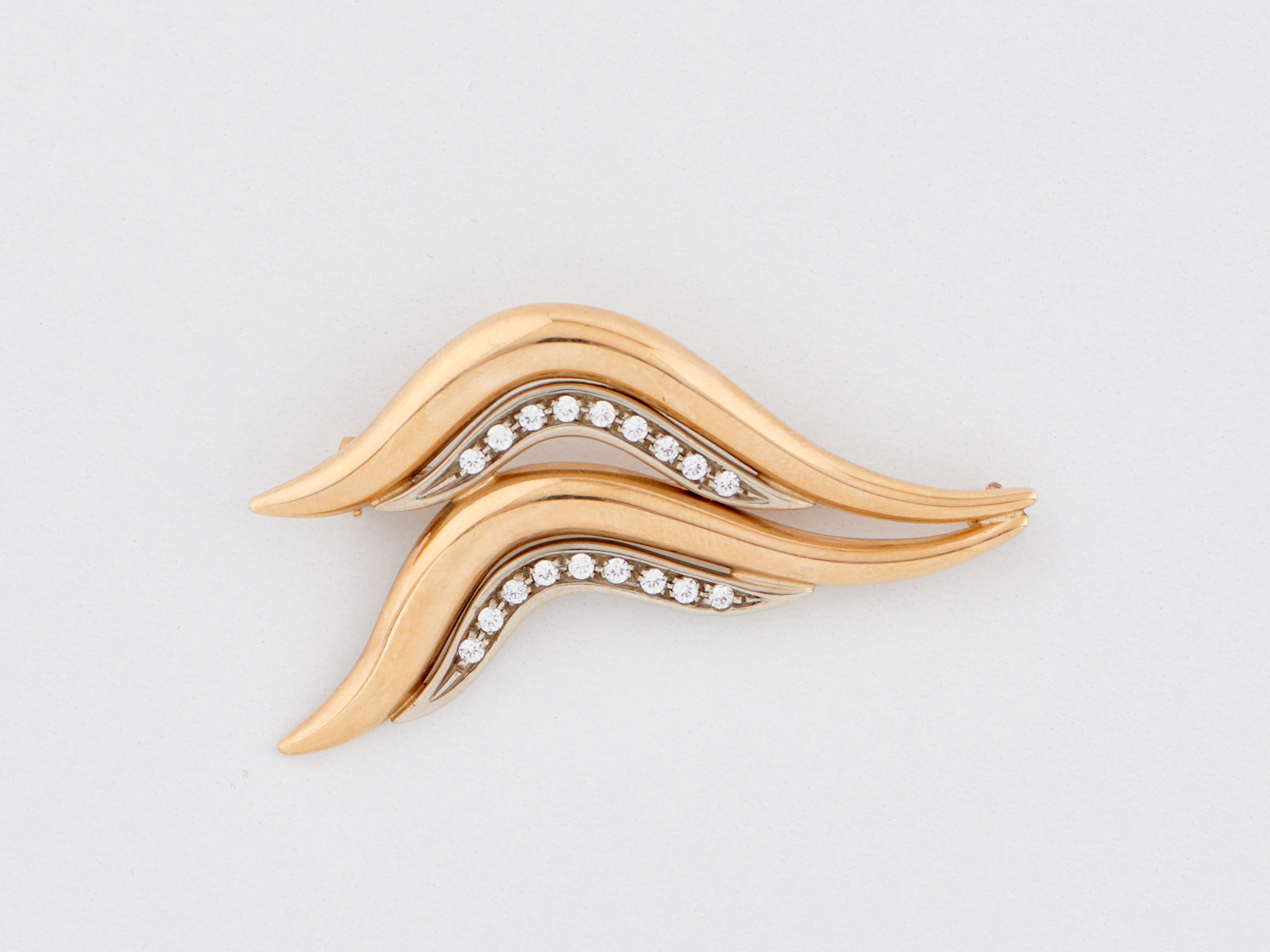 A CUBIC ZIRCONIA SET BROOCH IN 9CT GOLD, 52MM, 7.1GMS