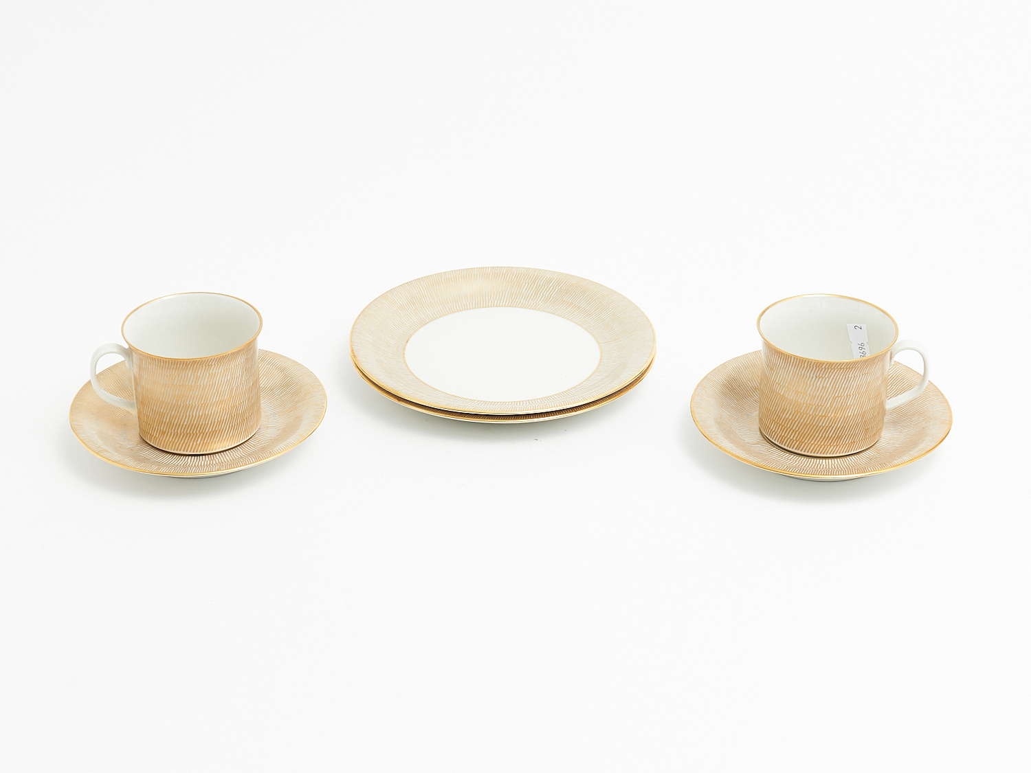 TWO RORSTRAND PRIMEUR GOLD COFFEE CUP, SAUCER AND PLATE TRIOS DESIGNED BY SIGNE PERSSON-MELIN, LEONARD JOEL LOCAL DELIVERY: SMALL