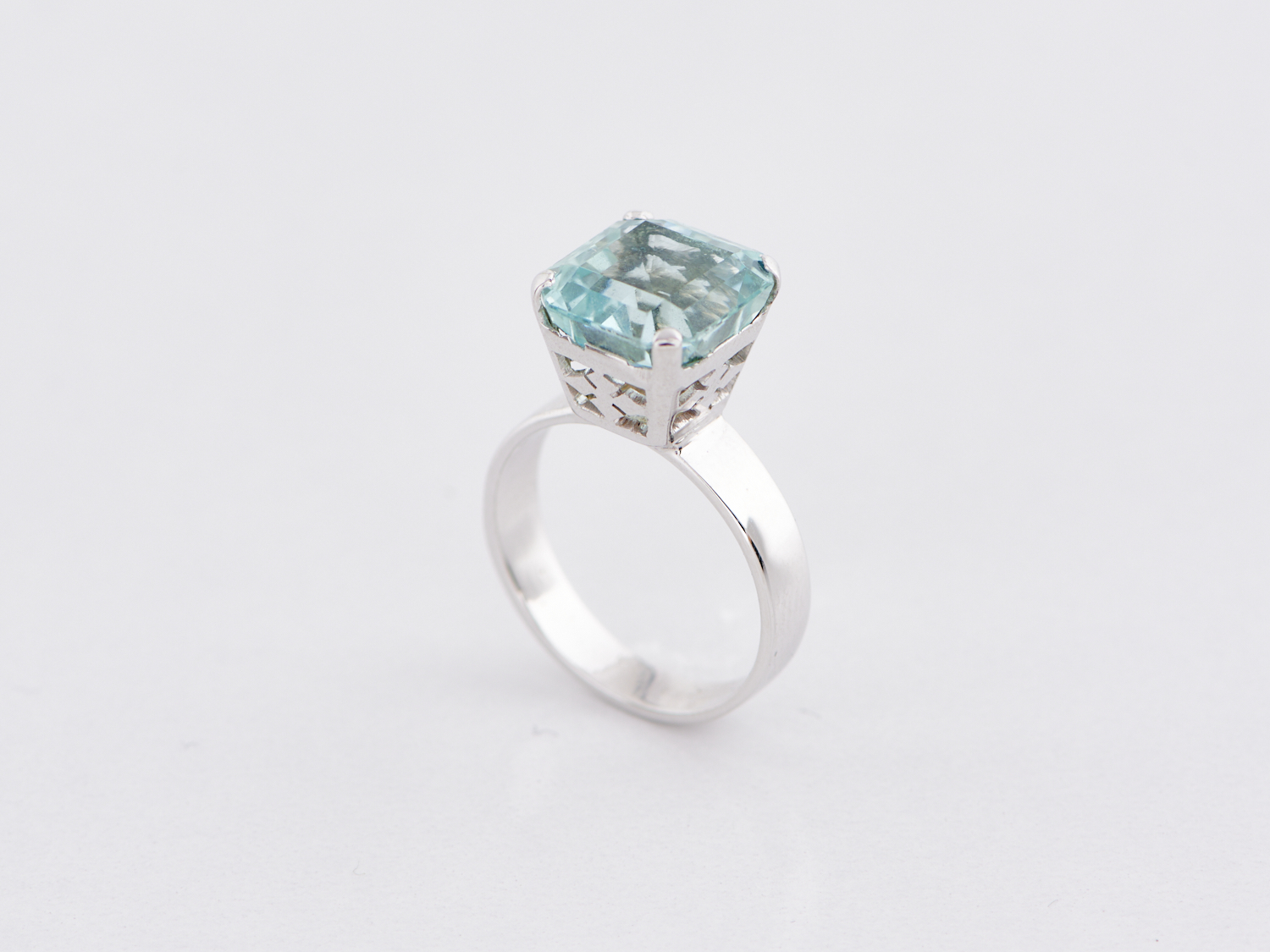 AN AQUAMARINE SET RING IN 18CT WHITE GOLD, THE AQUAMARINE WEIGHING APPROXIMATELY 4.0CTS, SIZE J, 3.65GMS, WITH VALUATION