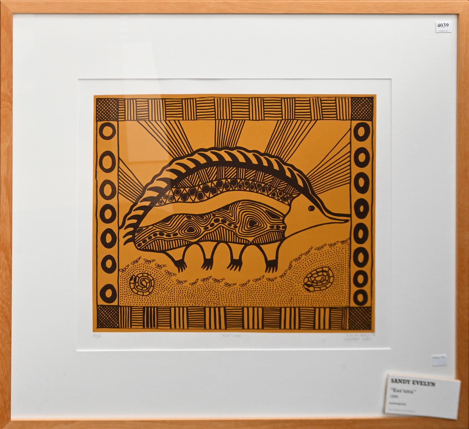 JEAN BAPTISTE APUATIMI, UNTITLED 1999, OCHRE ON CANVAS, 80 X 80CM INSCRIBED VERSO WITH ARTISTS NAME AND TIWI DESIGNS CAT. NO. P-1...