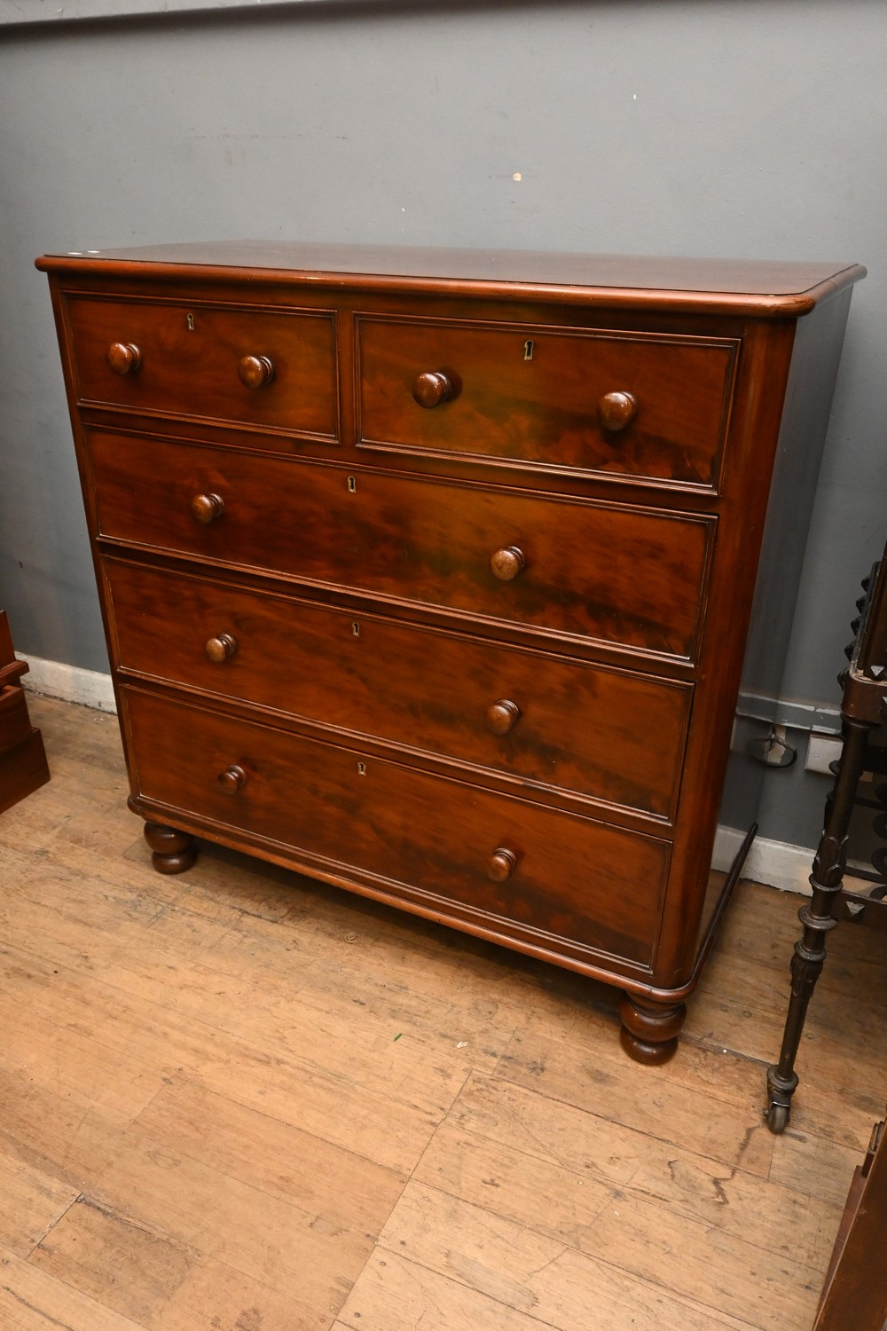 A VICTORIAN MAHOGANY FIVE DRAWER CHEST - KEY IN OFFICE (A/F) (118H X 116W X 57D CM) (PLEASE NOTE THIS HEAVY ITEM MUST BE REMOVED BY CLIENTS OR CARRIERS AT THE CUSTOMERS EXPENSE. LEONARD JOEL STAFF CANNOT ASSIST CARRYING THIS ITEM)