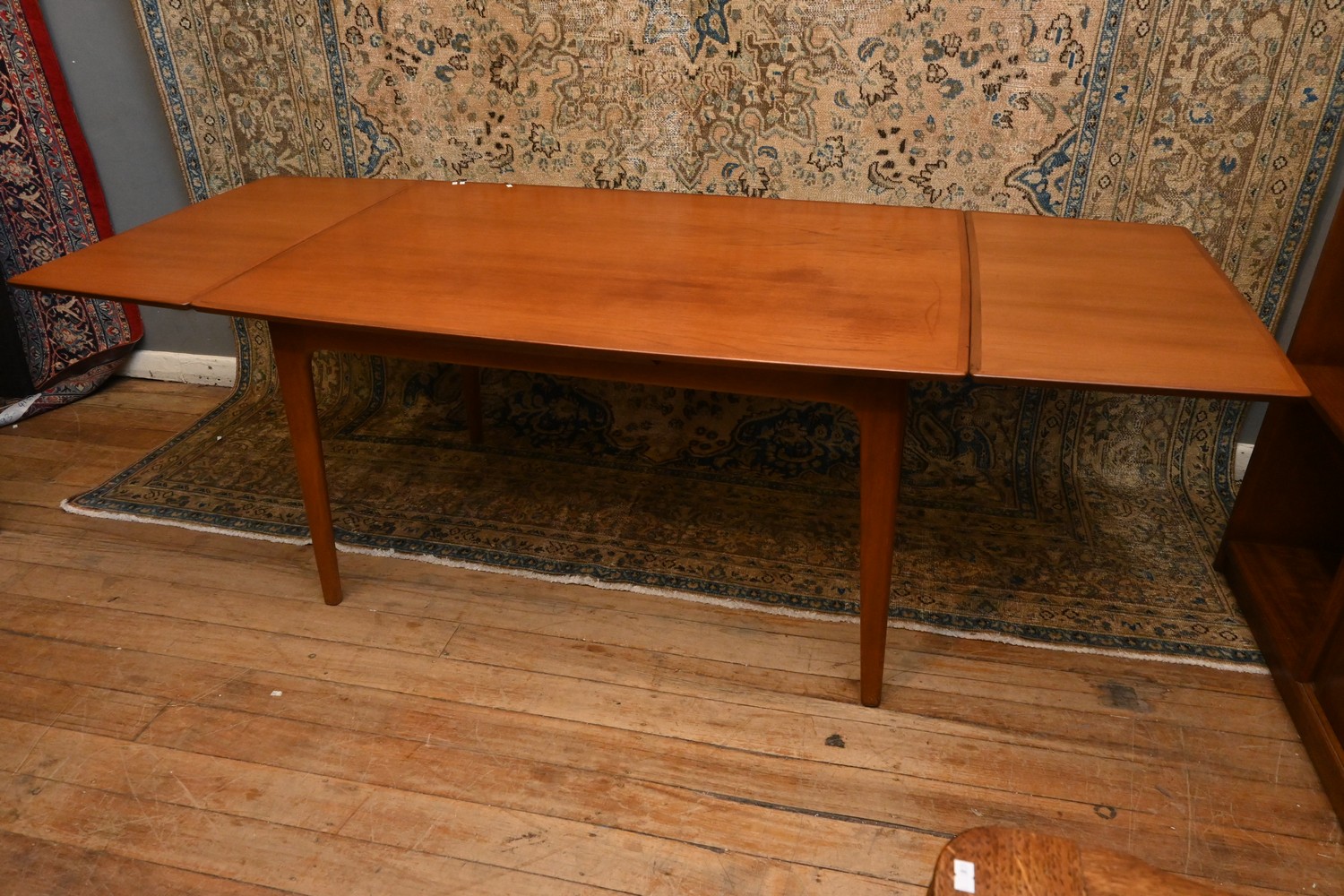 A MID CENTURY TEAK EXTENSION DINING TABLE (A/F) (75H X 228W X 93D CM) (PLEASE NOTE THIS HEAVY ITEM MUST BE REMOVED BY CLIENTS OR CARRIERS AT THE CUSTOMERS EXPENSE. LEONARD JOEL STAFF CANNOT ASSIST CARRYING THIS ITEM)