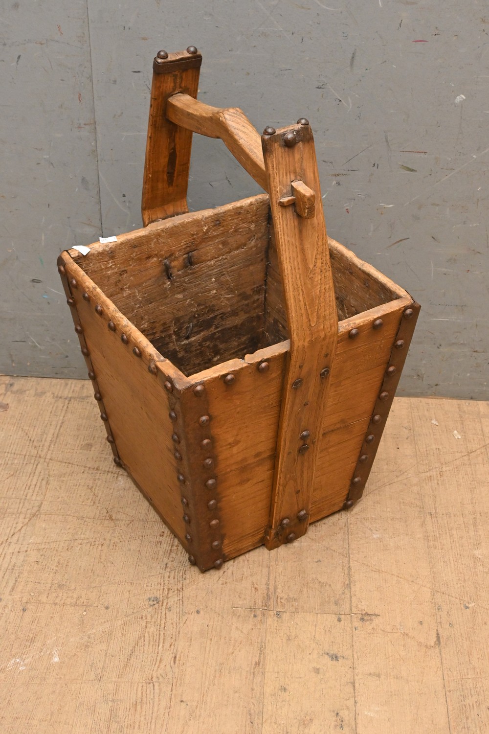 A VINTAGE TIMBER BUCKET (65H X 35W X 35D CM) (LEONARD JOEL DELIVERY SIZE: LARGE)