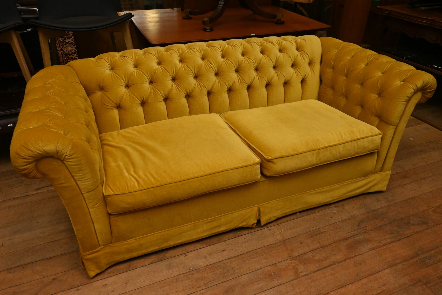 AN UPHOLSTERED BUTTONBACK SOFA (71H X 191W X 89D CM) (PLEASE NOTE THIS HEAVY ITEM MUST BE REMOVED BY CLIENTS OR CARRIERS AT THE CUSTOMERS EXPENSE. LEONARD JOEL STAFF CANNOT ASSIST CARRYING THIS ITEM)