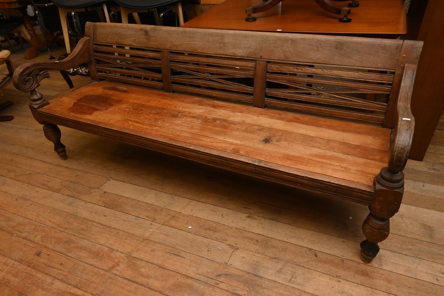 A TEAK BENCH (A/F) (80H X 199W X 66D CM) (PLEASE NOTE THIS HEAVY ITEM MUST BE REMOVED BY CLIENTS OR CARRIERS AT THE CUSTOMERS EXPENSE. LEONARD JOEL STAFF CANNOT ASSIST CARRYING THIS ITEM)