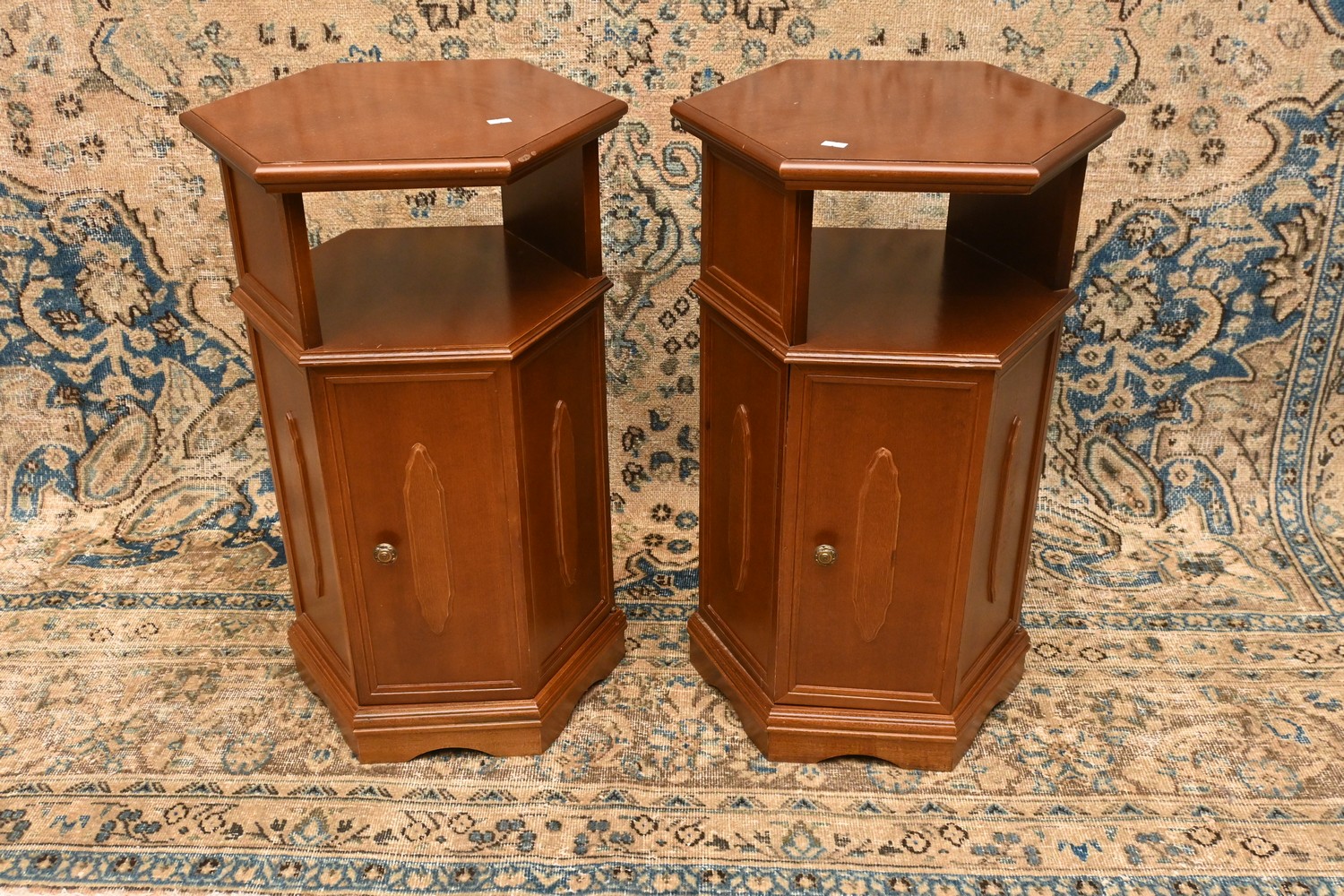 A PAIR OF OCTAGONAL SIDE TABLES (A/F) (70H X 45W X 40D CM) (LEONARD JOEL DELIVERY SIZE: LARGE)