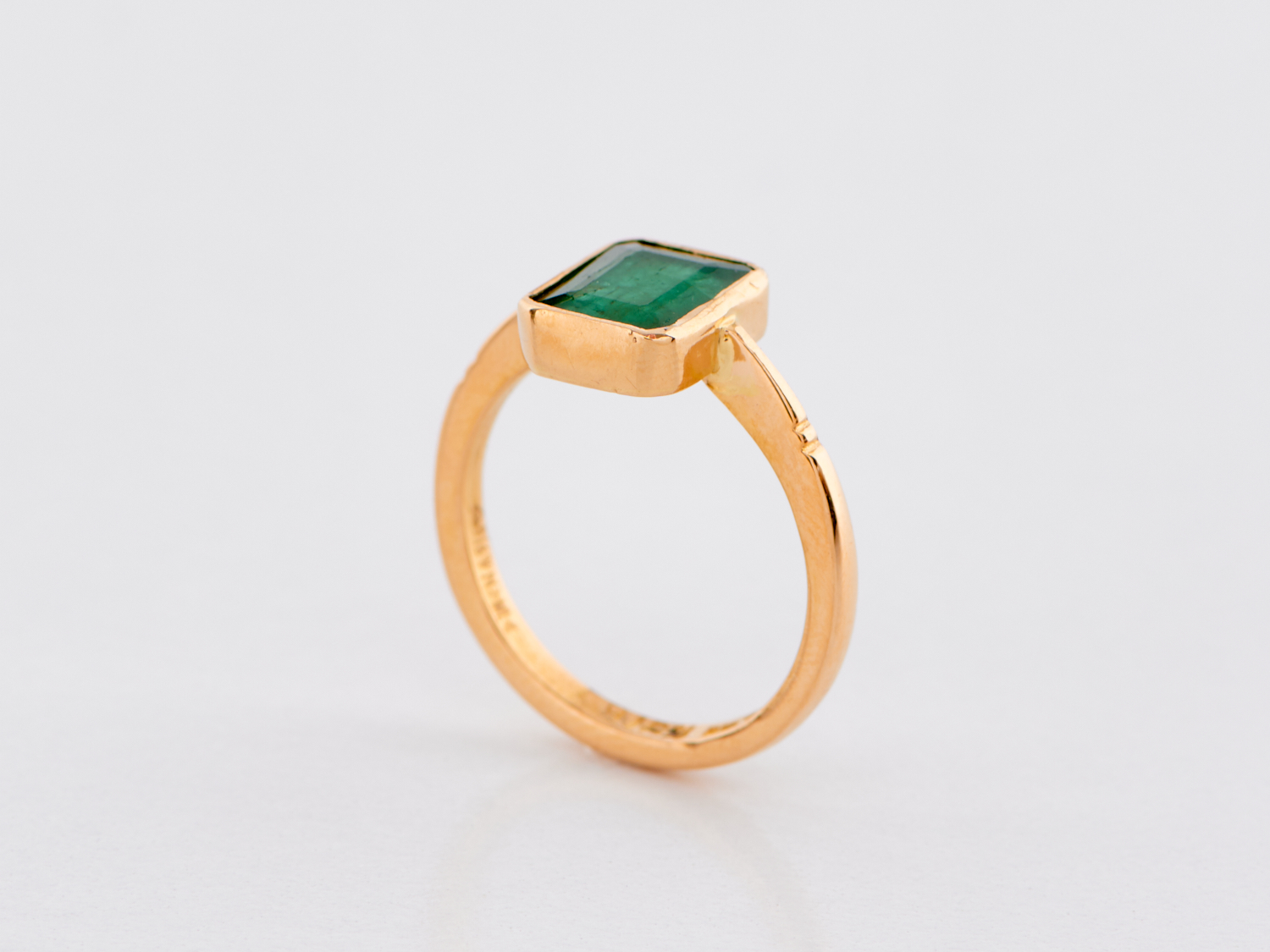 AN EMERALD SET RING IN 22CT GOLD, THE EMERALD CUT EMERALD WEIGHING APPROXIMATELY 2.0CTS, 4.35GMS, WITH VALUATION