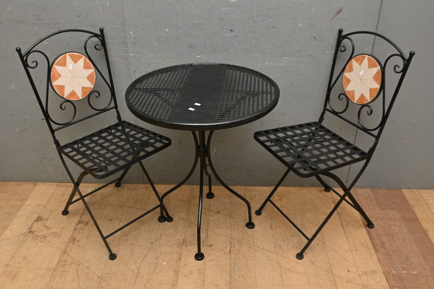 A THREE PIECE FOLDING OUTDOOR SETTING (70H X 60D CM) (LEONARD JOEL DELIVERY SIZE: LARGE)