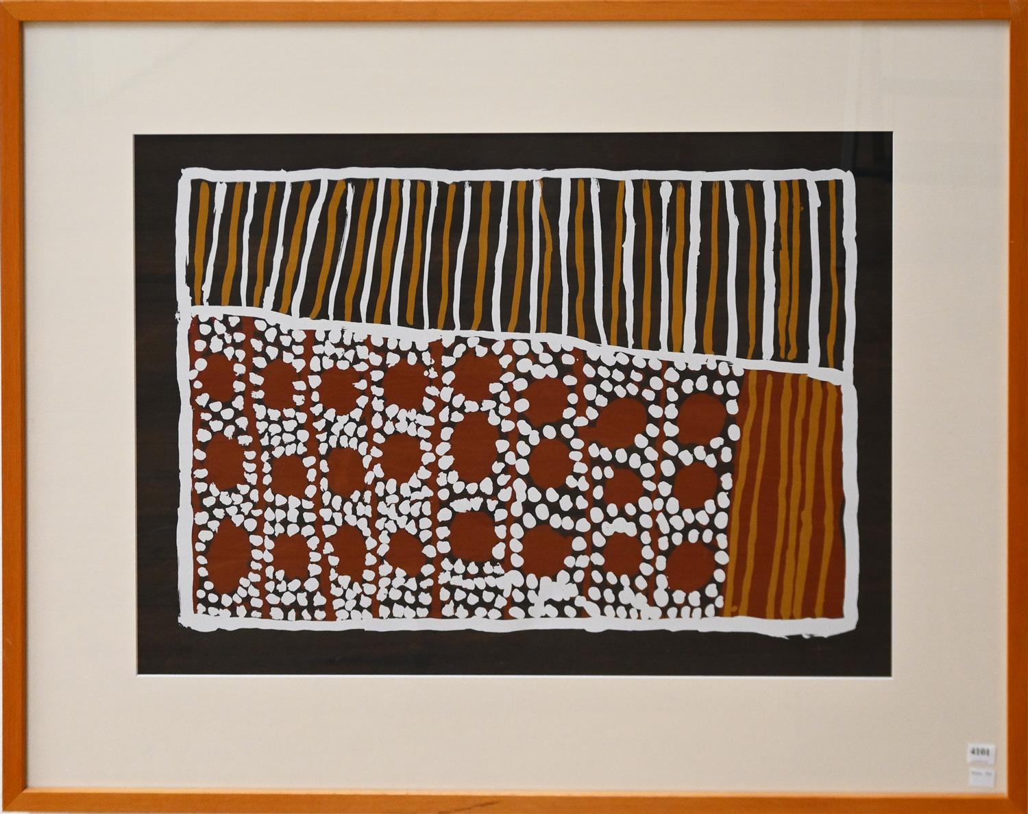 JEAN BAPTISTE APUATIMI, UNTITLED 1999, OCHRE ON CANVAS, 80 X 80CM INSCRIBED VERSO WITH ARTISTS NAME AND TIWI DESIGNS CAT. NO. P-1...