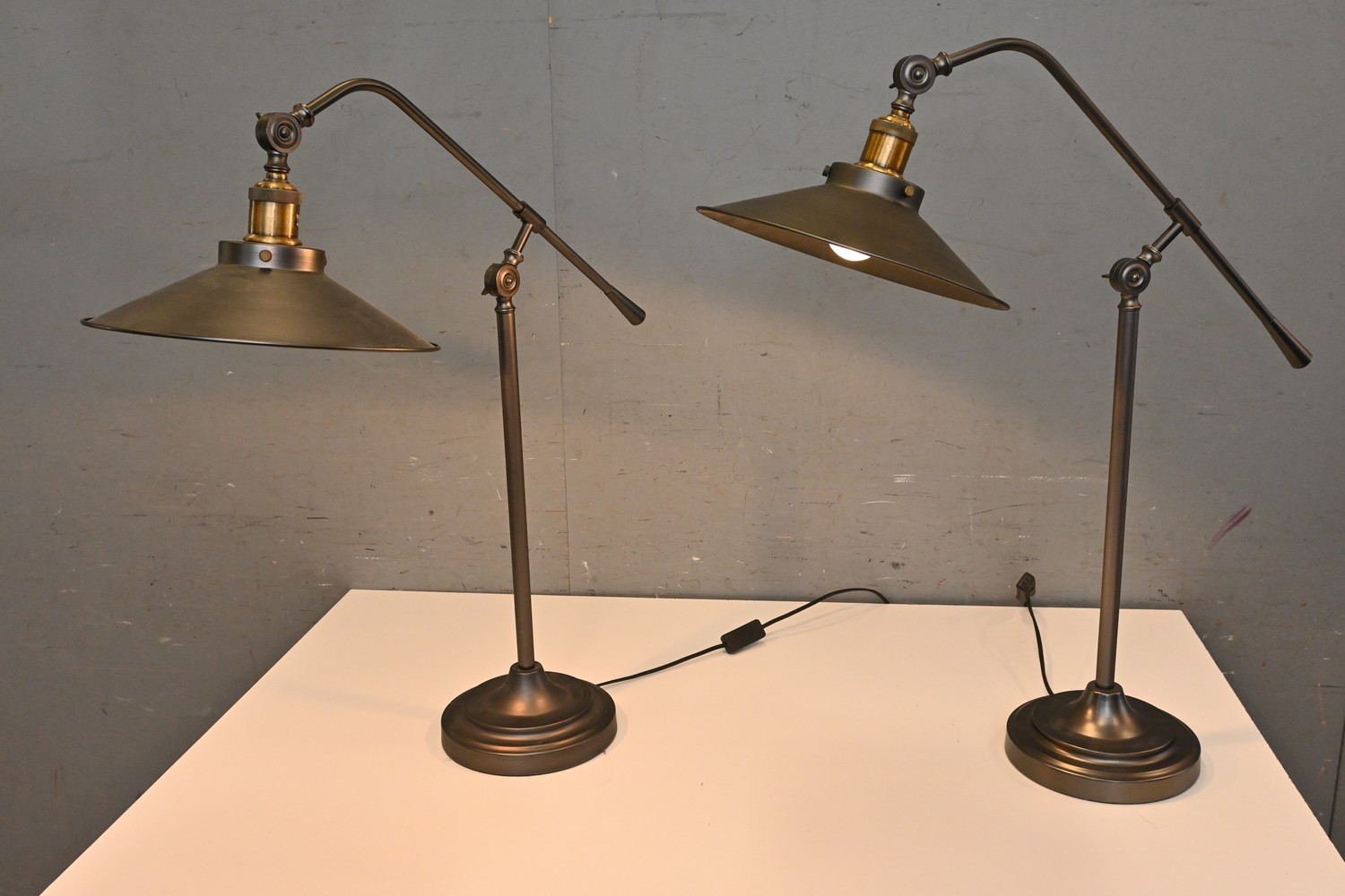 A PAIR OF ANTIQUE STYLE DESK LAMPS (H80 CM) (LEONARD JOEL DELIVERY SIZE: MEDIUM)