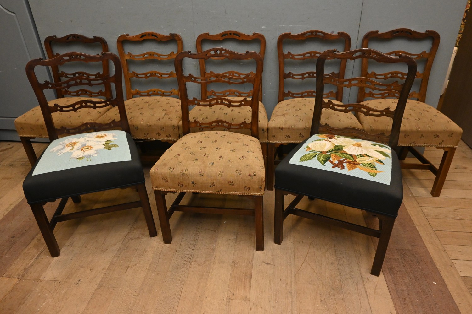 A HARLEQUIN SET OF EIGHT GEORGIAN DINING CHAIRS (A/F) (95H X 56W X 53D CM) (LEONARD JOEL DELIVERY SIZE: X-LARGE)