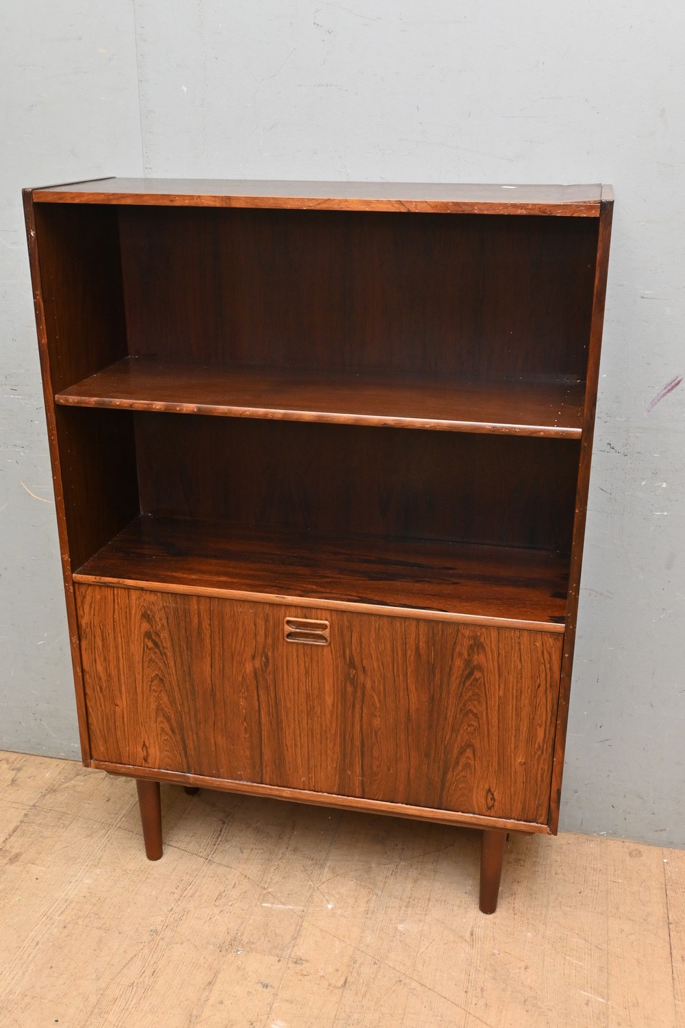 A DANISH MID CENTURY BOOKCASE/CABINET (A/F) ( 125H X 87W X 31D CM) (LEONARD JOEL DELIVERY SIZE: LARGE)