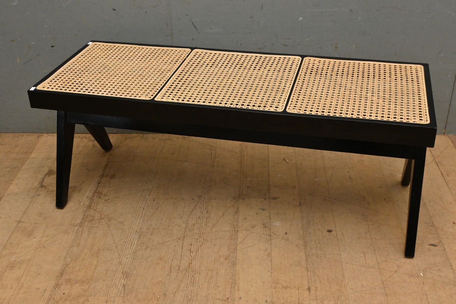 A TEAK AND RATTAN BENCH SEAT (47H X 120W X 45D CM) (LEONARD JOEL DELIVERY SIZE: LARGE)