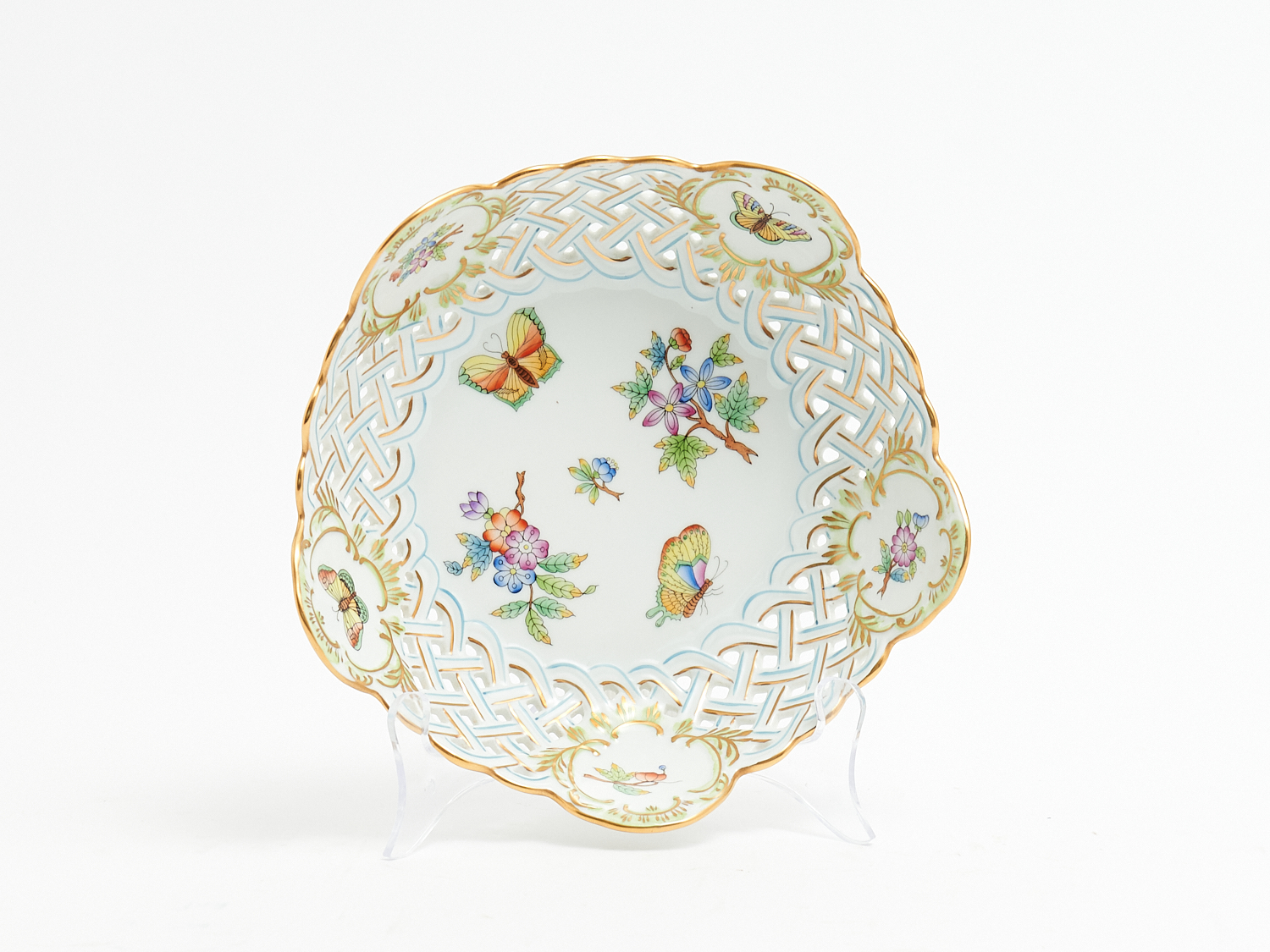 A HEREND PORCELAIN PIERCED BOWL DIA.19CM, LEONARD JOEL LOCAL DELIVERY: SMALL