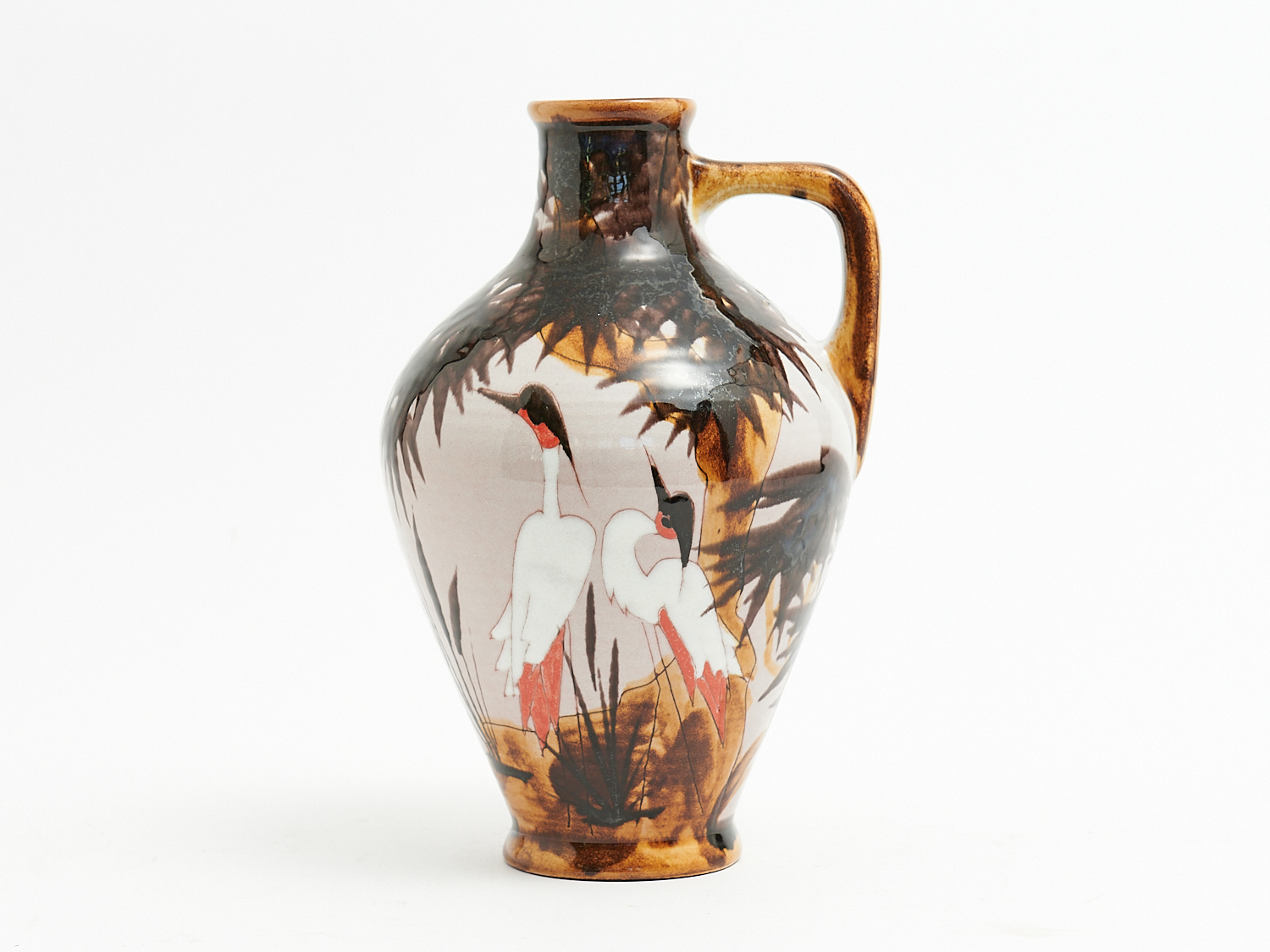A WEST GERMAN VASE WITH CRANE DECORATIONS H.27CM, LEONARD JOEL LOCAL DELIVERY: SMALL