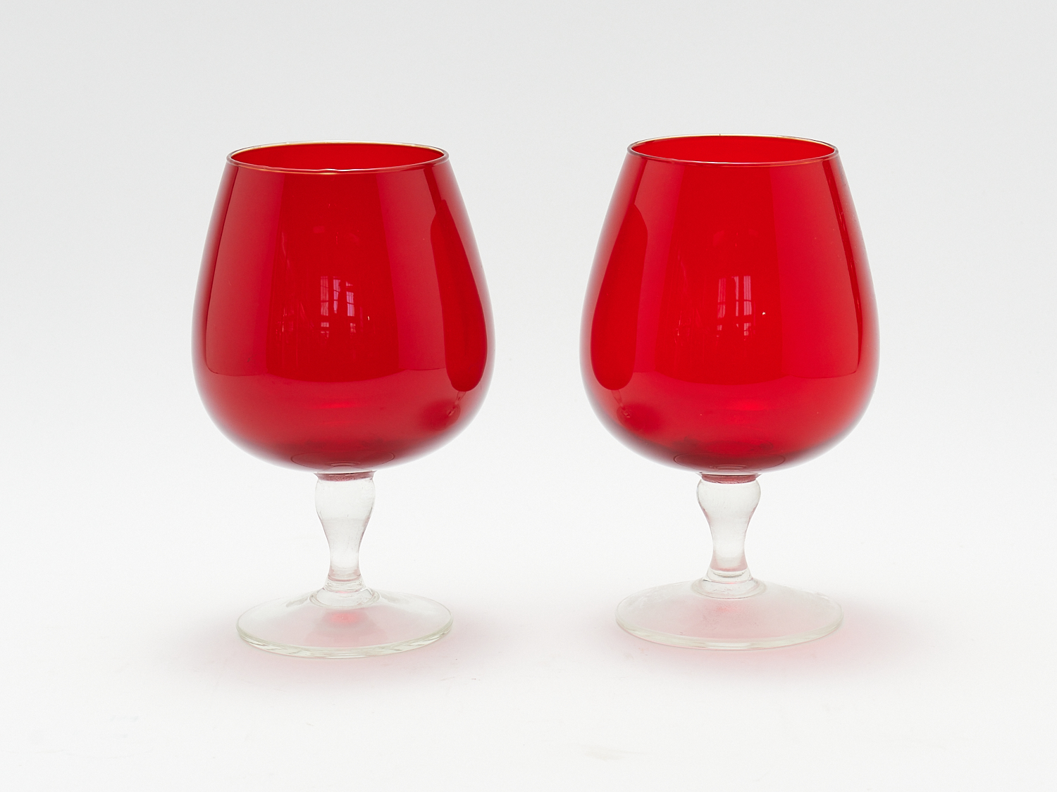 A PAIR OF RED GLASS VASES H.21.5CM, LEONARD JOEL LOCAL DELIVERY: MEDIUM