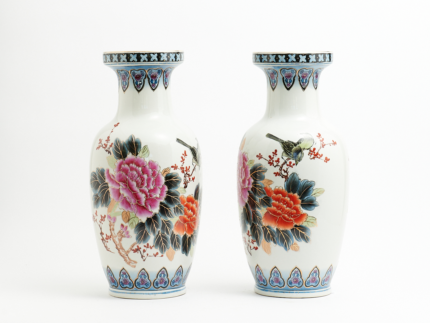 A PAIR OF CHINESE VASES H.46.5CM, LEONARD JOEL LOCAL DELIVERY: MEDIUM