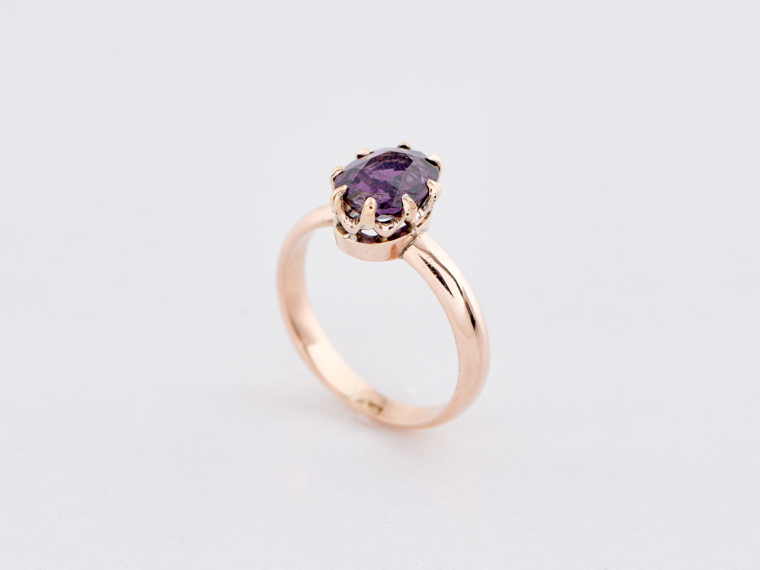 AN ANTIQUE GARNET RING IN 9CT GOLD, THE GARNET TOTALLING 2.10CTS, SIZE N, 3.6GMS