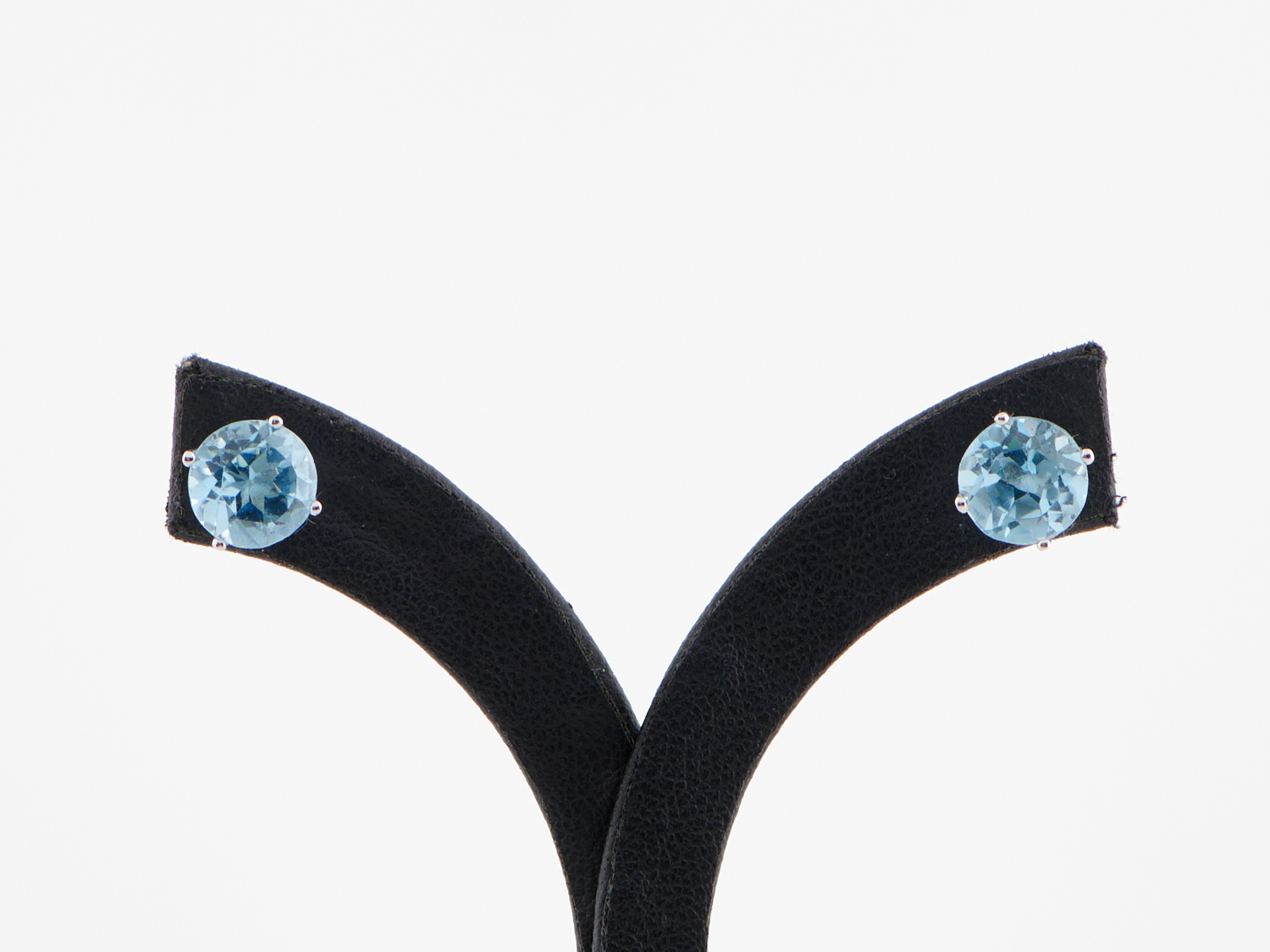 A PAIR OF BLUE TOPAZ STUD EARRINGS IN 9CT WHITE GOLD, TO POST AND BUTTERFLY FITTINGS, APPOXIMATLEY 5.00CTS