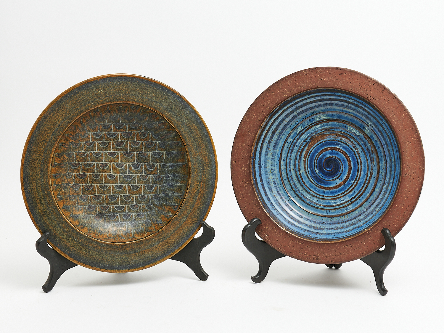 TWO STONEWARE BOWLS, ERIC PLOWEN (NORWAY) AND HELGE BUFSTROM (DENMARK) DIA.31CM (LARGEST), LEONARD JOEL LOCAL DELIVERY: MEDIUM