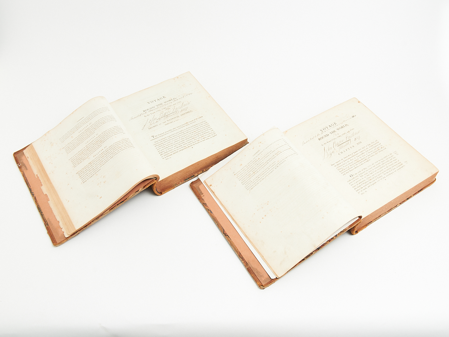 TWO VOLUMES OF A VOYAGE ROUND THE WORLD, 1799 (A/F), FROM THE PERSONAL LIBRARY OF JOHN PASCOE FAWKNER, SIGNED, LEONARD JOEL LOCAL DELIVERY: MEDIUM