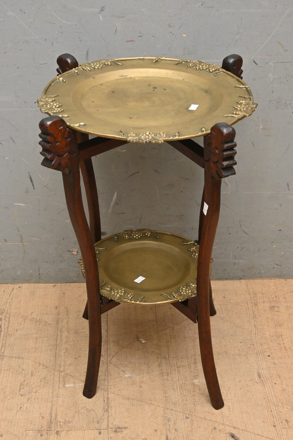 A CHINESE TWO TIER BRASS AND ROSEWOOD FOLDING TABLE ( 62H X 45 DIAMETER CM) (LEONARD JOEL DELIVERY SIZE: LARGE)
