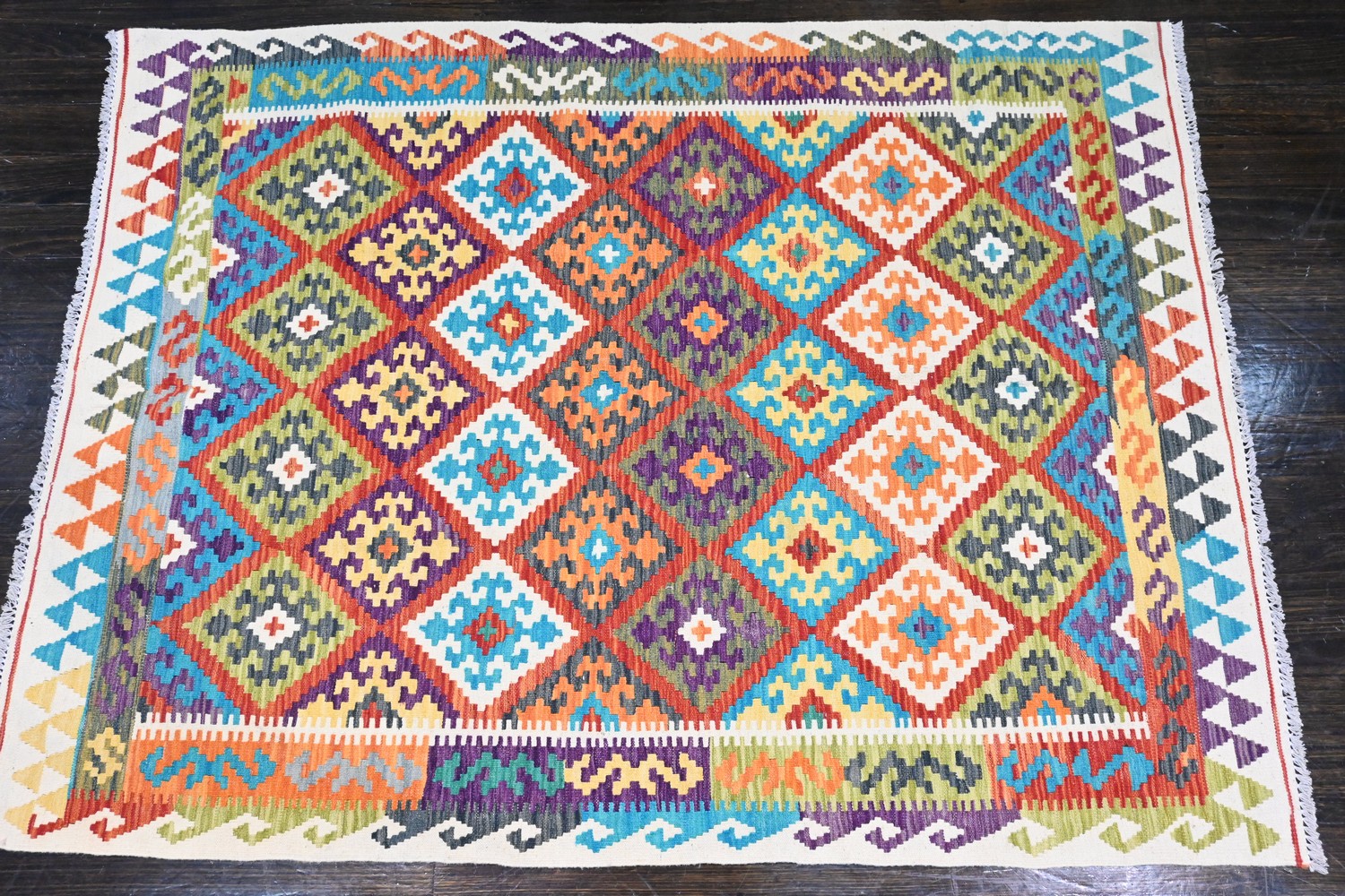 AN AFGHAN KAZAK KILIM IN CAUCASIAN DESIGN, ALL VEGETABLE DYES, 100% WOOL, FULLY REVERSABLE (202 X 150 CM) (LEONARD JOEL DELIVERY SIZE: LARGE)