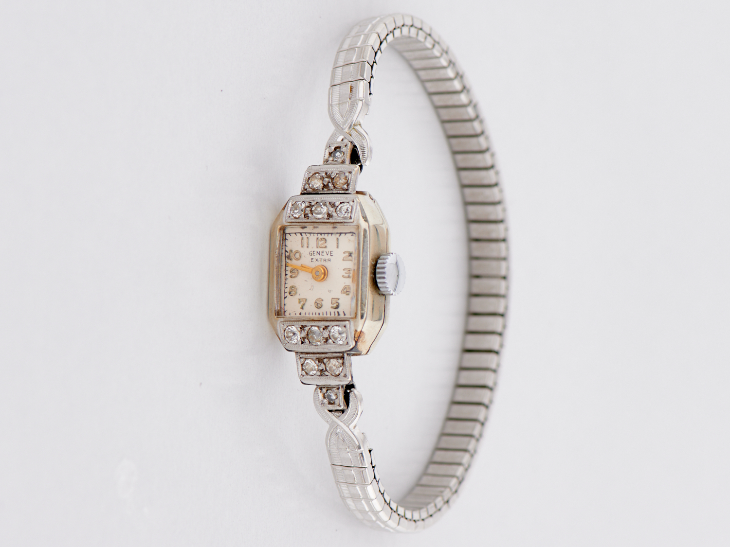 A LADIES DIAMOND SET WRISTWATCH IN 18CT GOLD, TO A STRETCH BAND IN METAL, WATCH CASE SIZE APPROXIMATELY 13 X 30MM.