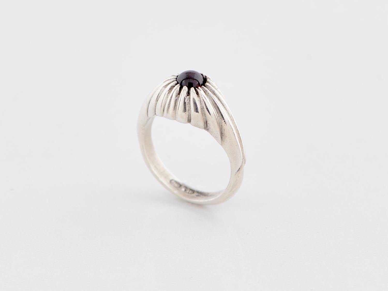 A GARNET SET RING IN STERLING SILVER BY TONY KEAN, SIZE M, BOXED