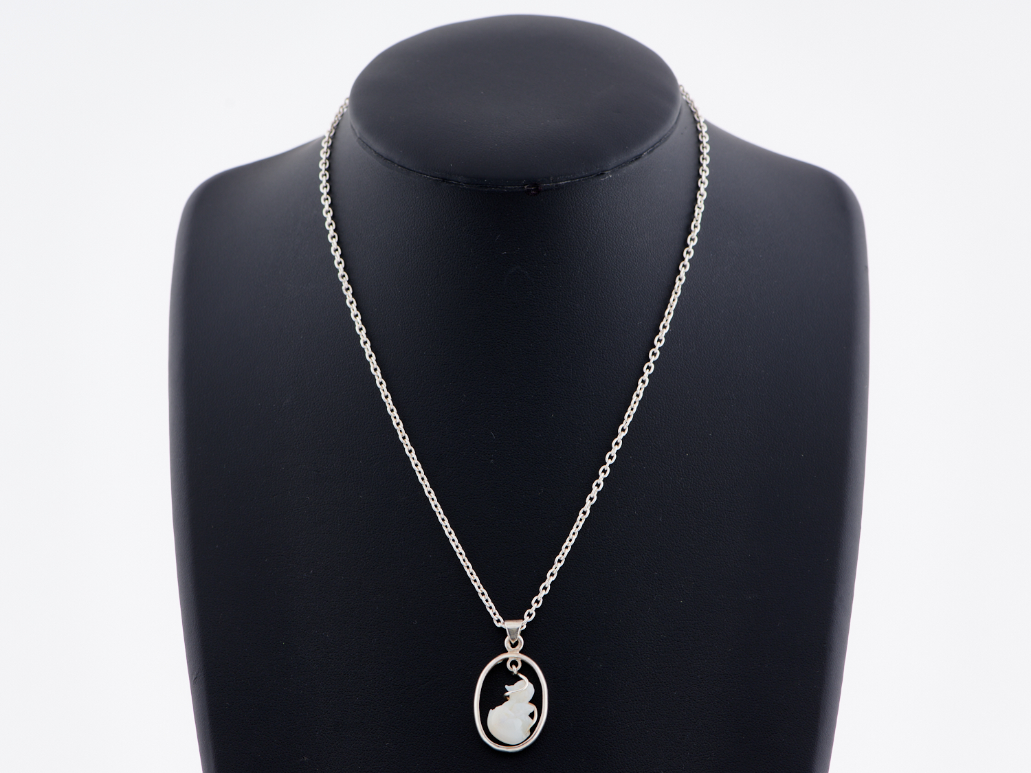 A CARVED ''DUCK AND EGG'' PENDANT IN STERLING SILVER BY TONY KEAN TO A CHAIN IN STERLING SILVER, BOXED