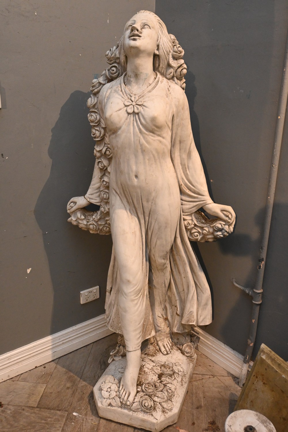 A LARGE CONCRETE STATUE OF A WOMAN (A/F) (164H X 72W X 58D CM) (PLEASE NOTE THIS HEAVY ITEM MUST BE REMOVED BY CLIENTS OR CARRIERS AT THE CUSTOMERS EXPENSE. LEONARD JOEL STAFF CANNOT ASSIST CARRYING THIS ITEM)