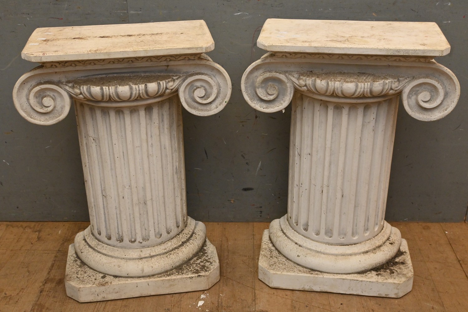 A PAIR OF CLASSICAL STYLE CONCRETE COLUMNS (A/F) (77H X 56W X 24D CM) (PLEASE NOTE THIS HEAVY ITEM MUST BE REMOVED BY CLIENTS OR CARRIERS AT THE CUSTOMERS EXPENSE. LEONARD JOEL STAFF CANNOT ASSIST CARRYING THIS ITEM)