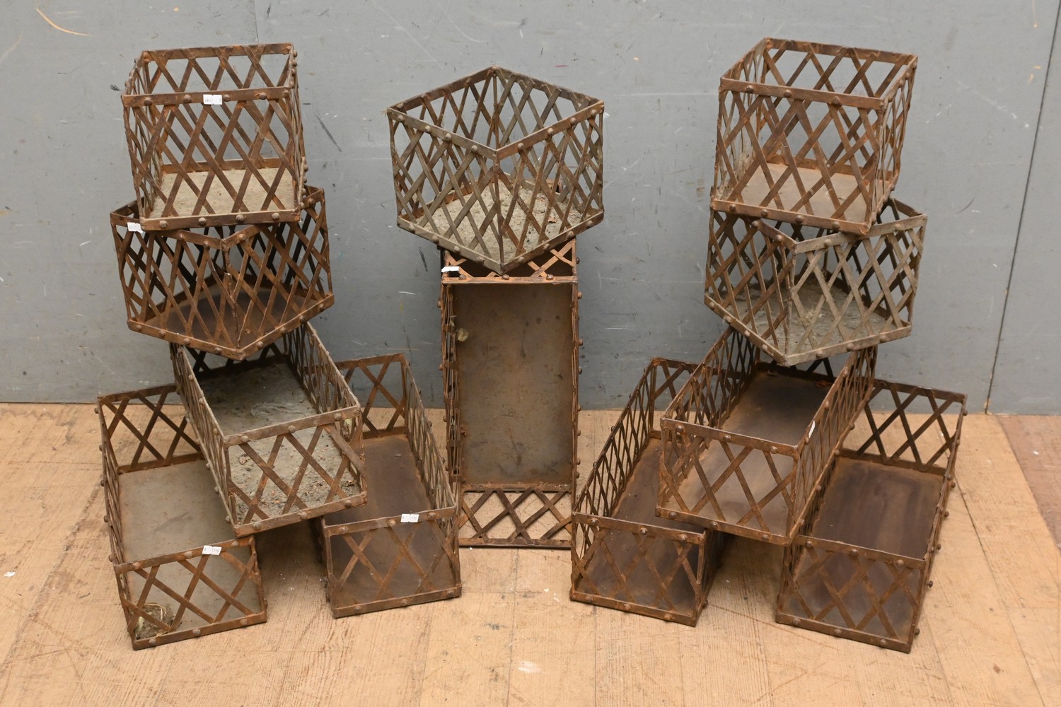 A COLLECTION OF THIRTEEN WIRE BASKETS (A/F) (15H X 41W X 18D CM) (LEONARD JOEL DELIVERY SIZE: LARGE)