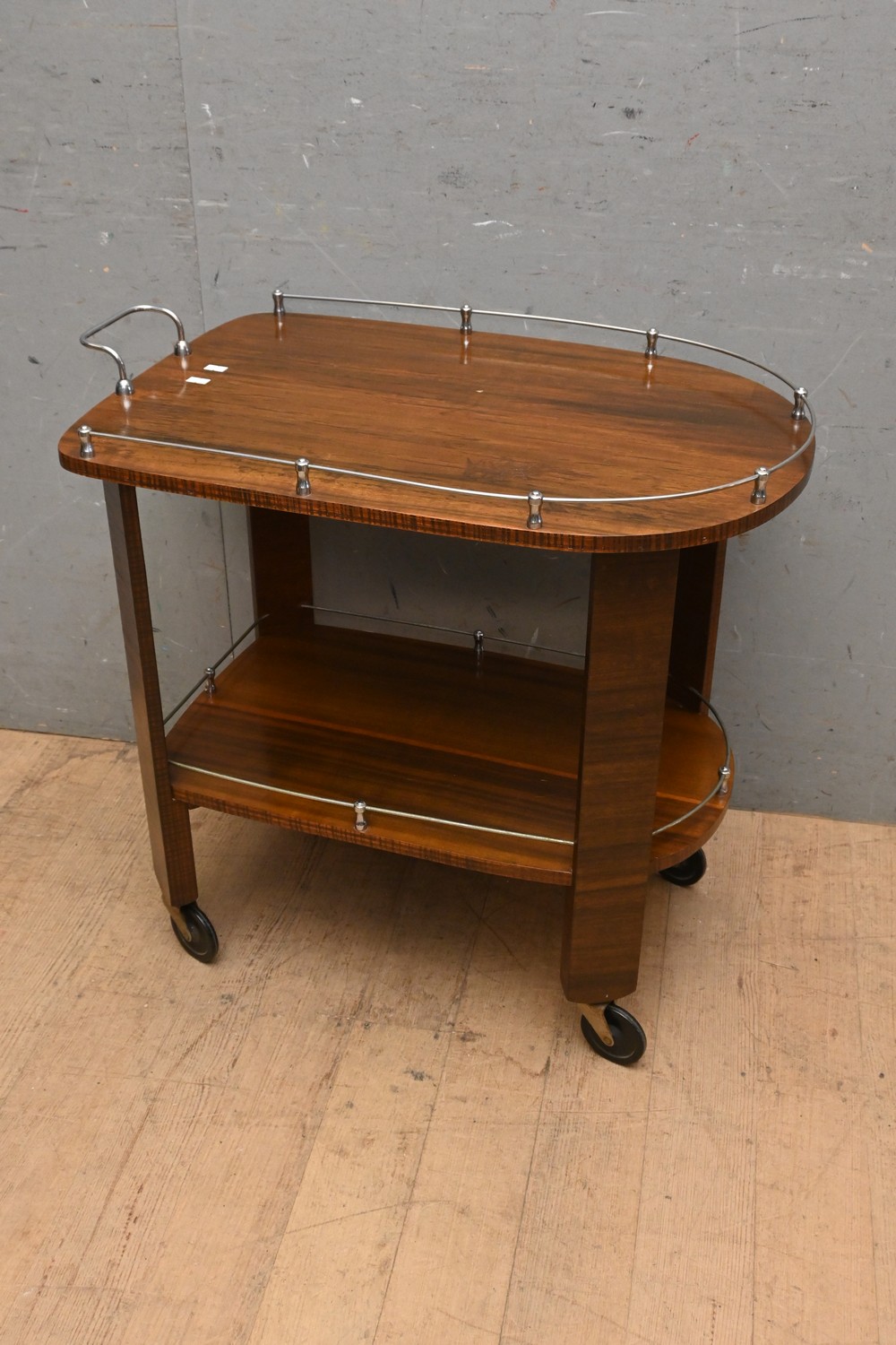 A WALNUT AND CHROME AUTO TROLLEY (A/F) (68H X 72W X 45D CM) (LEONARD JOEL DELIVERY SIZE: LARGE)