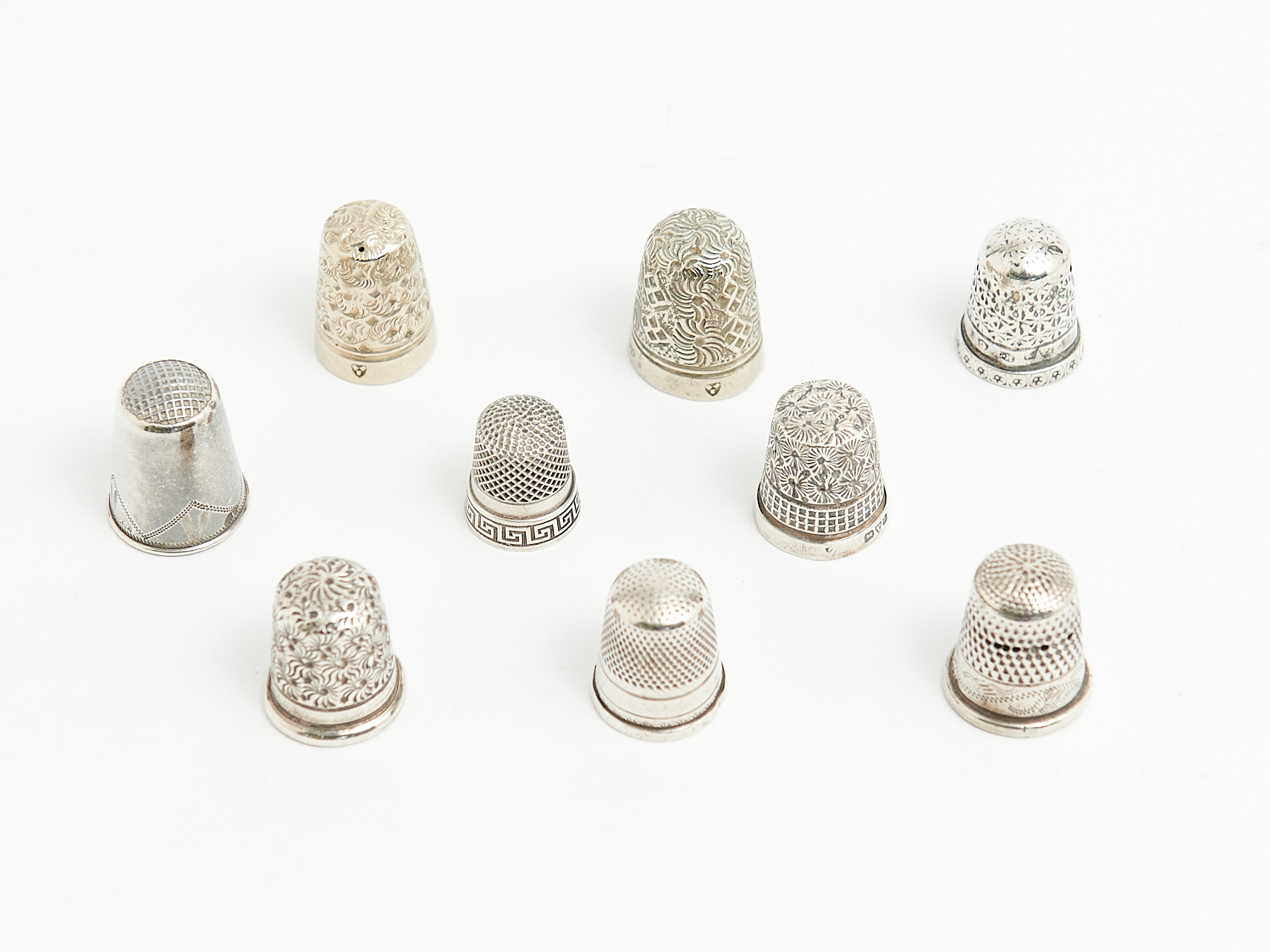 A GROUP OF NINE STERLING SILVER THIMBLES, LEONARD JOEL LOCAL DELIVERY: SMALL