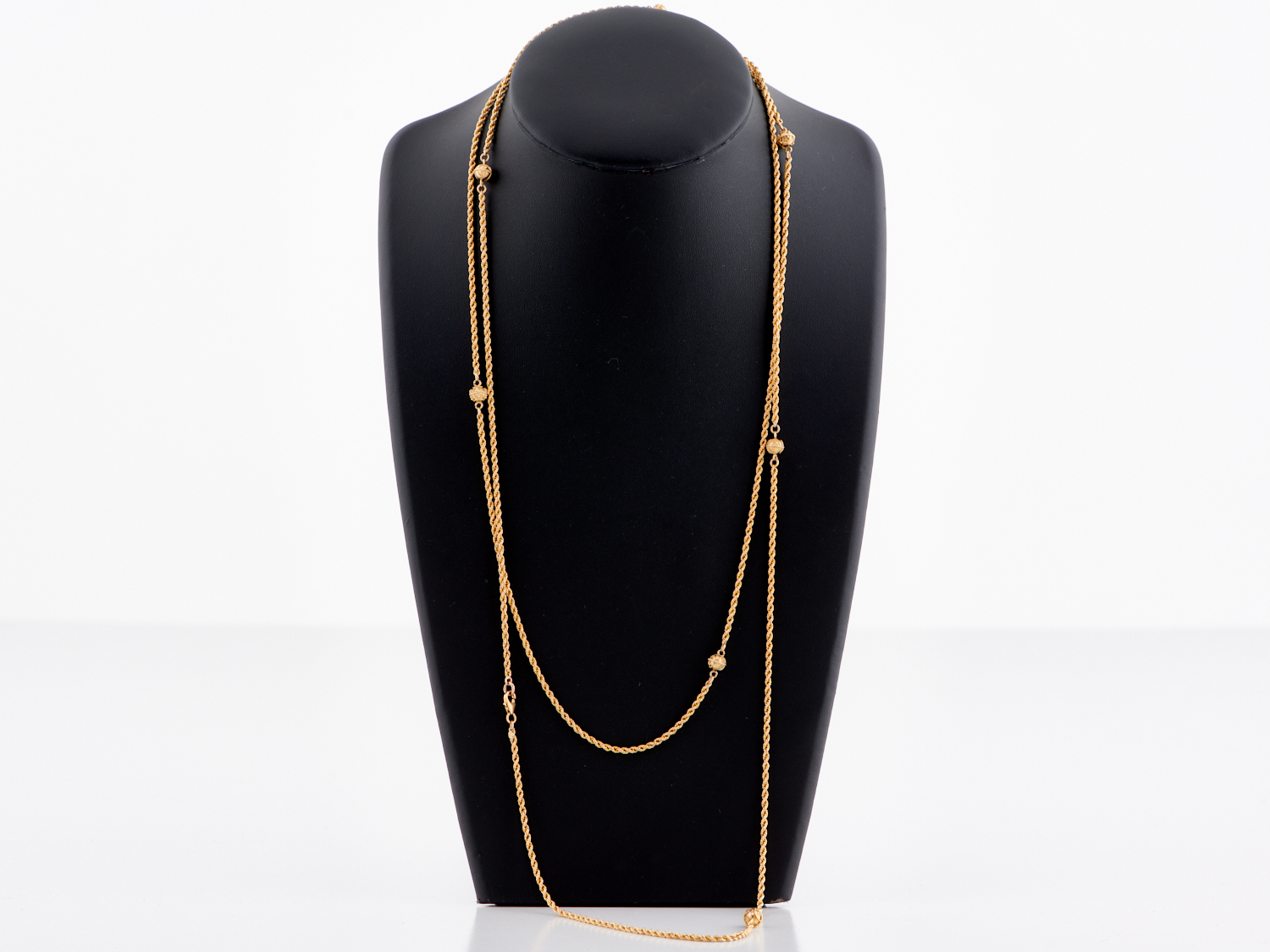 A HANDMADE NECKLACE IN 9CT GOLD, LENGTH 1440MM, 24.45GMS, WITH VALUATION