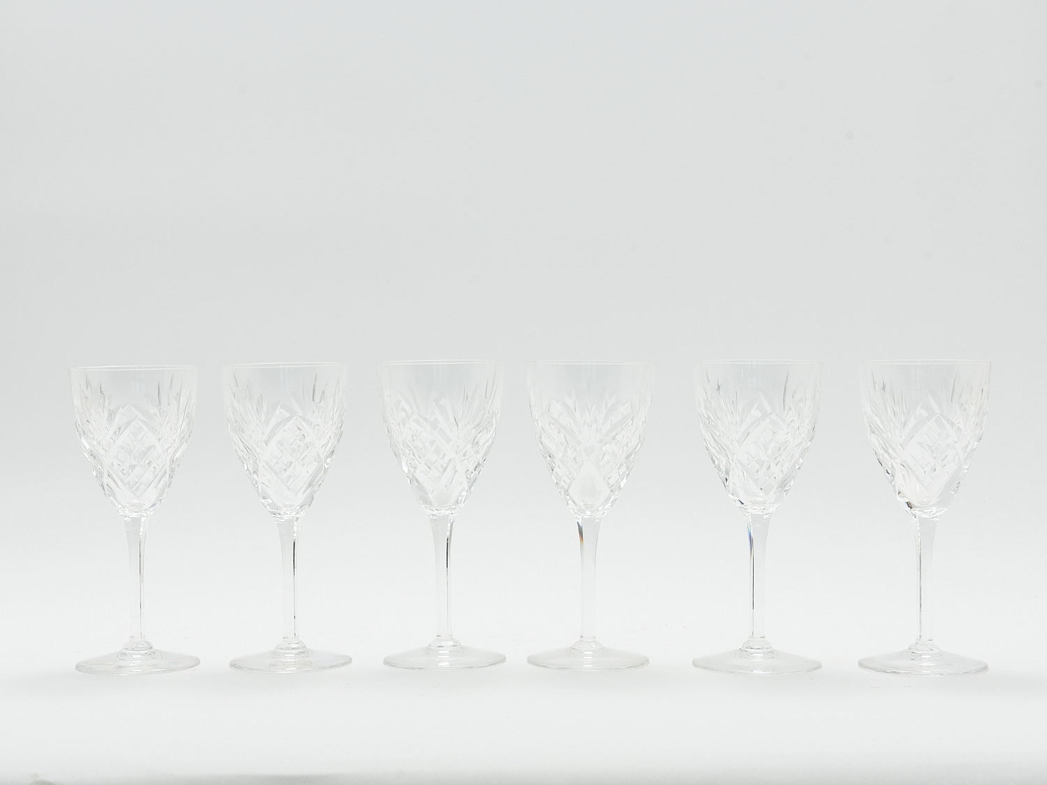 A SET OF SIX VINTAGE FRENCH SAINT LOUIS CRYSTAL CHANTILLY BURGUNDY WINE GLASSES, H.15CM, LEONARD JOEL LOCAL DELIVERY: MEDIUM